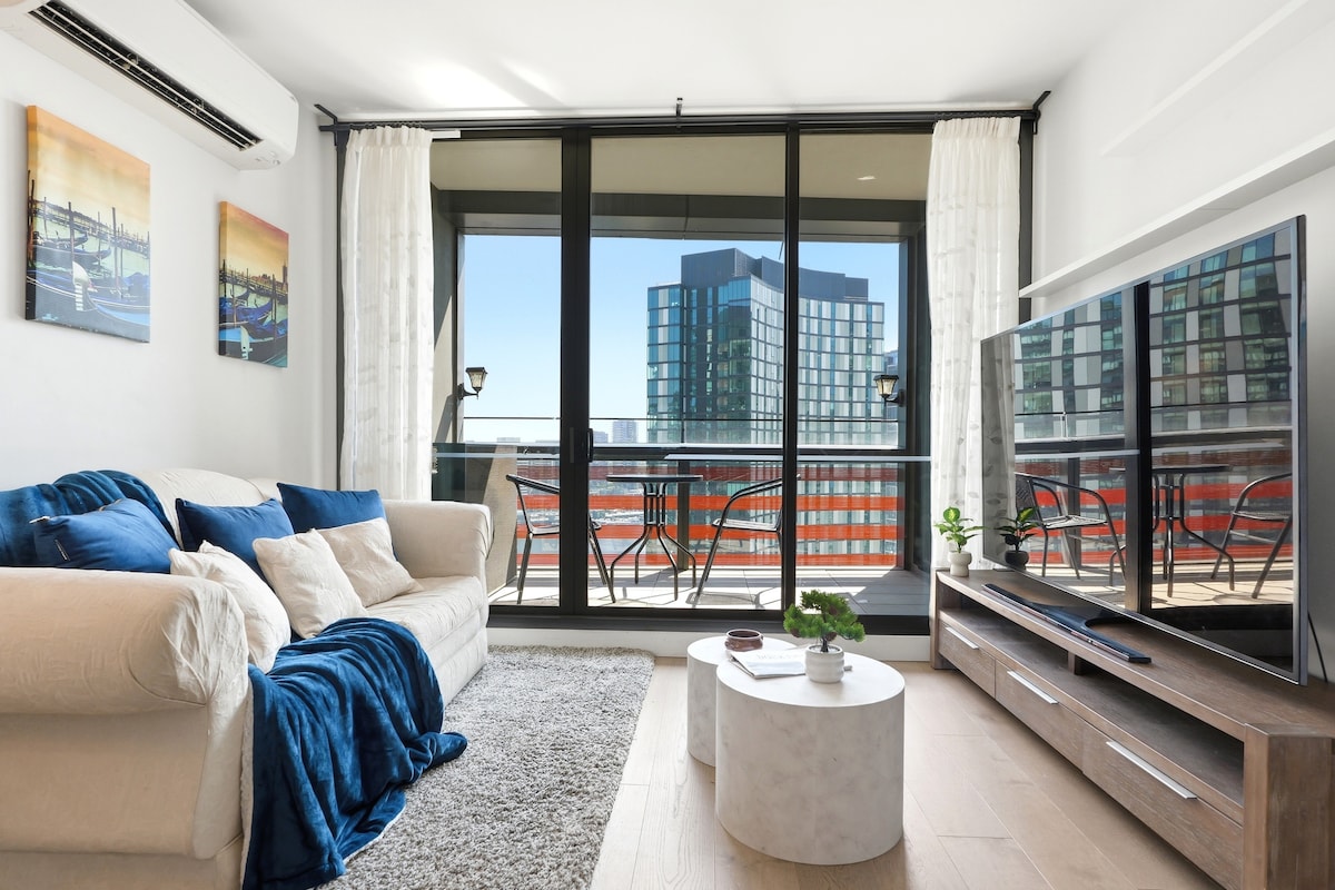Ten nowoczesny apartament z dwoma sypialniami i dwiema łazienkami, położony na 28. piętrze w samym sercu Southbank, oferuje zapierający dech w piersiach widok na panoramę miasta i zatokę. Idealna na pobyt służbowy lub rekreacyjny. Oferuje w pełni wyposażoną kuchnię i dostęp do udogodnień w stylu ośrodka wypoczynkowego, w tym dwóch basenów, siłowni, prywatnego kina i sali funkcyjnej ze stołem bilardowym. Dwie komfortowe sypialnie i doskonała lokalizacja w pobliżu Crown, dzielnicy sztuki, promenady Southbank i centrum finansowego (CBD) – to miejsce oferuje gościom komfort, wygodę i styl.