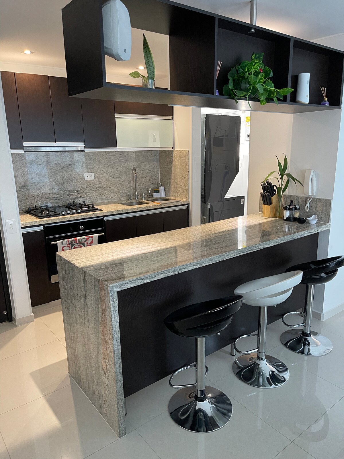 Rozkoszuj się nowoczesnym i eleganckim apartamentem typu studio z balkonem i pięknym widokiem na miasto. Położony w nowoczesnym budynku z basenem, siłownią i świetnymi udogodnieniami. W apartamencie znajduje się w pełni wyposażona kuchnia, pralka/suszarka, szybkie Wi-Fi i możliwość samodzielnego zameldowania. Wygodne i przytulne miejsce, idealne dla par, osób podróżujących służbowo lub tych, którzy chcą cieszyć się Bucaramangą w dobrym stylu i z komfortem.