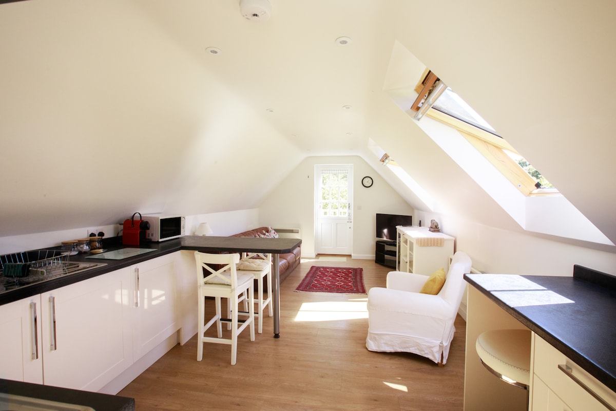 A spacious & comfortable Studio. Self contained & private. The Studio is part of the historic ‘Listed’ Grade II* Kennet House, built in 1701 by the Bishop of Oxford, nestled near the village pond, the church & the village pub. The Studio is an airy, calm space: Kitchenette & table 3 seater sofa & smart TV King size bed & dressing table Bathroom: bath with a shower Washing machine, iron & board Entrance hallway: ideal for bikes & boots. The Studio is on the first floor via a private staircase.