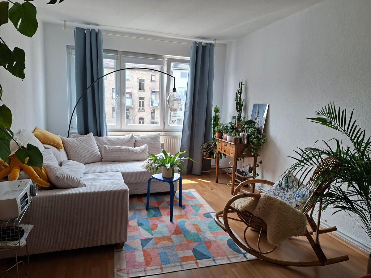 Przytulny apartament na poddaszu (kuchnia, łazienka), mieszanka designu i vintage w kolorowym domu artysty z 1938 roku. Klatka schodowa jest dzielona z inną osobą. Dom znajduje się bezpośrednio przy dworcu kolejowym/autobusowym (5 minut do dworca głównego MZ). Możliwy hałas z pociągu/autobusu. Samochodem 35 min. do lotniska FFM, 45-55 min. do miasta FFM/targów, 20 min. do MZ/WI. Parking bezpośrednio przy domu. 5 minut od Renu i pięknego rezerwatu przyrody. Supermarket, piekarnia, bank 2 minuty. Palenie nie jest dozwolone.