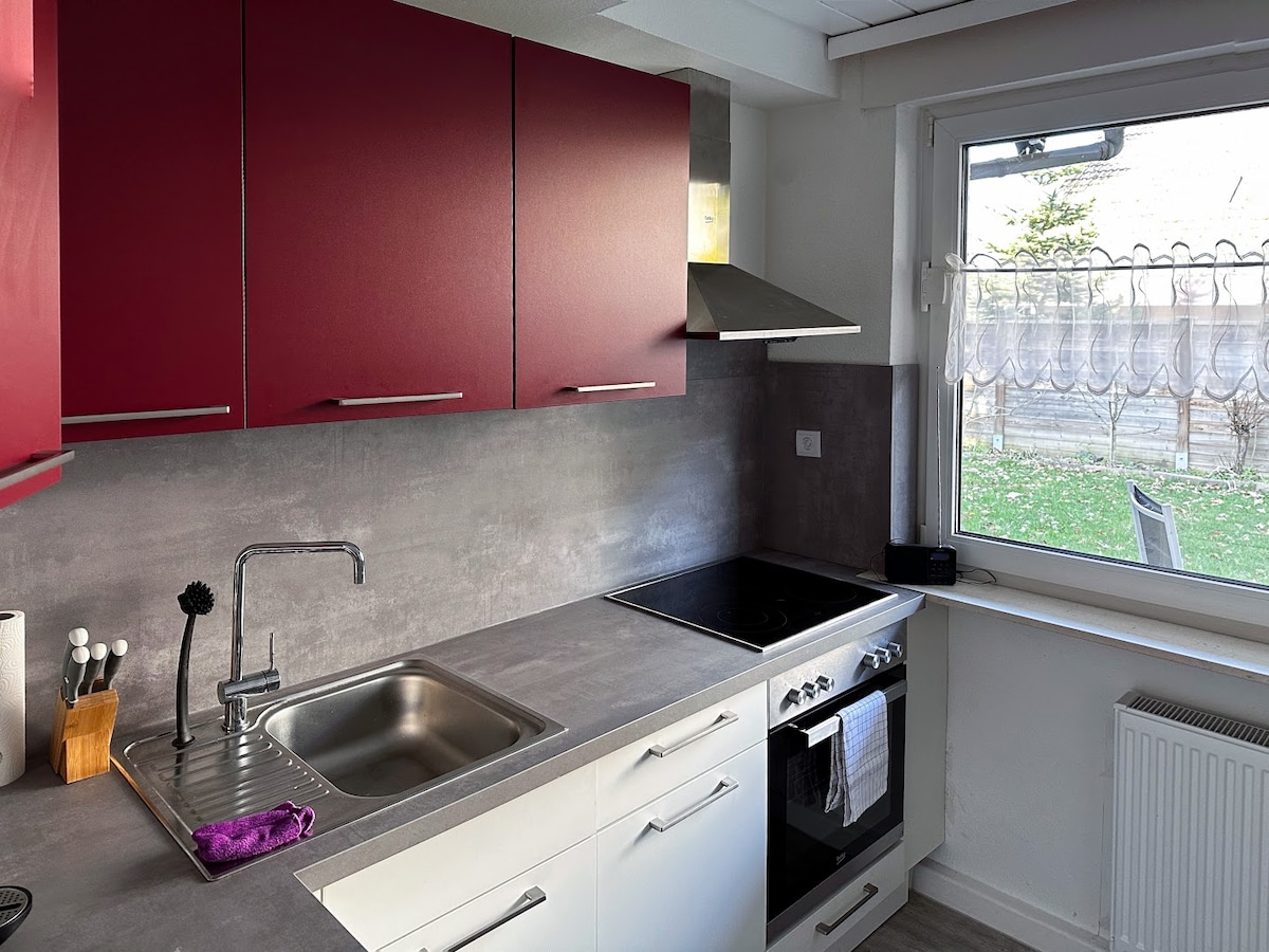 Nasz apartament znajduje się w cichej, leśnej dzielnicy Mainz-Gonsenheim. W apartamencie (26 m2) znajduje się nowoczesna wanna z prysznicem, mała kuchnia z kuchenką/piekarnikiem i wyposażona w WIFI, telewizor i Bluetooth Hifi. Dobry transport publiczny do miasta Mainz (25 min) i uniwersytetu (20 min). W pobliżu lasu zaprasza do biegania i relaksu. Supermarket, kawiarnie i restauracje w odległości spaceru. Bezpłatny parking przed domem. Mile widziani najemcy długoterminowi! Czynsz jest obniżony w rozłożeniu na 1 tydzień/4 tygodnie.