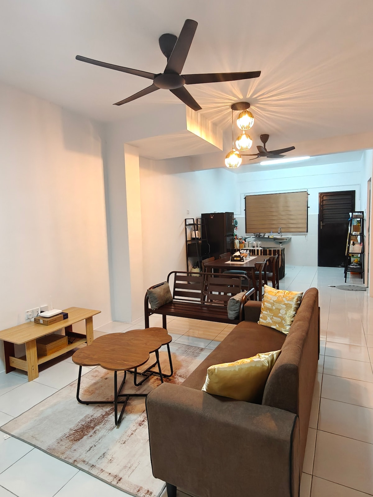 🏡 Trylar Homestay Jasin, Melaka 🏡 📍 Pangsapuri Jasin Bestari Blok B, parter (JC7475) 97 m² ✨ Przytulne • Przestronne • Niedrogie ✨ Odpowiednie dla grup >6 osób dorosłych 🛏️ 3 sypialnie i 2 łazienki (toaleta z sedesem) Pokój 1: 1 łóżko typu king + klimatyzacja + podgrzewacz wody Pokój 2: 1 łóżko typu queen + wentylator Pokój 3: 2 łóżka pojedyncze + wentylator Salon: sofa + wentylator 🌿 Relaksujący balkon i pralnia ✔️ Sofa ✔️ Smart TV + Wi-Fi ✔️ Lodówka i kuchenka mikrofalowa ✔️ Przybory kuchenne ✔️ Pralka ✔️ Ręcznik do prasowania i kąpieli