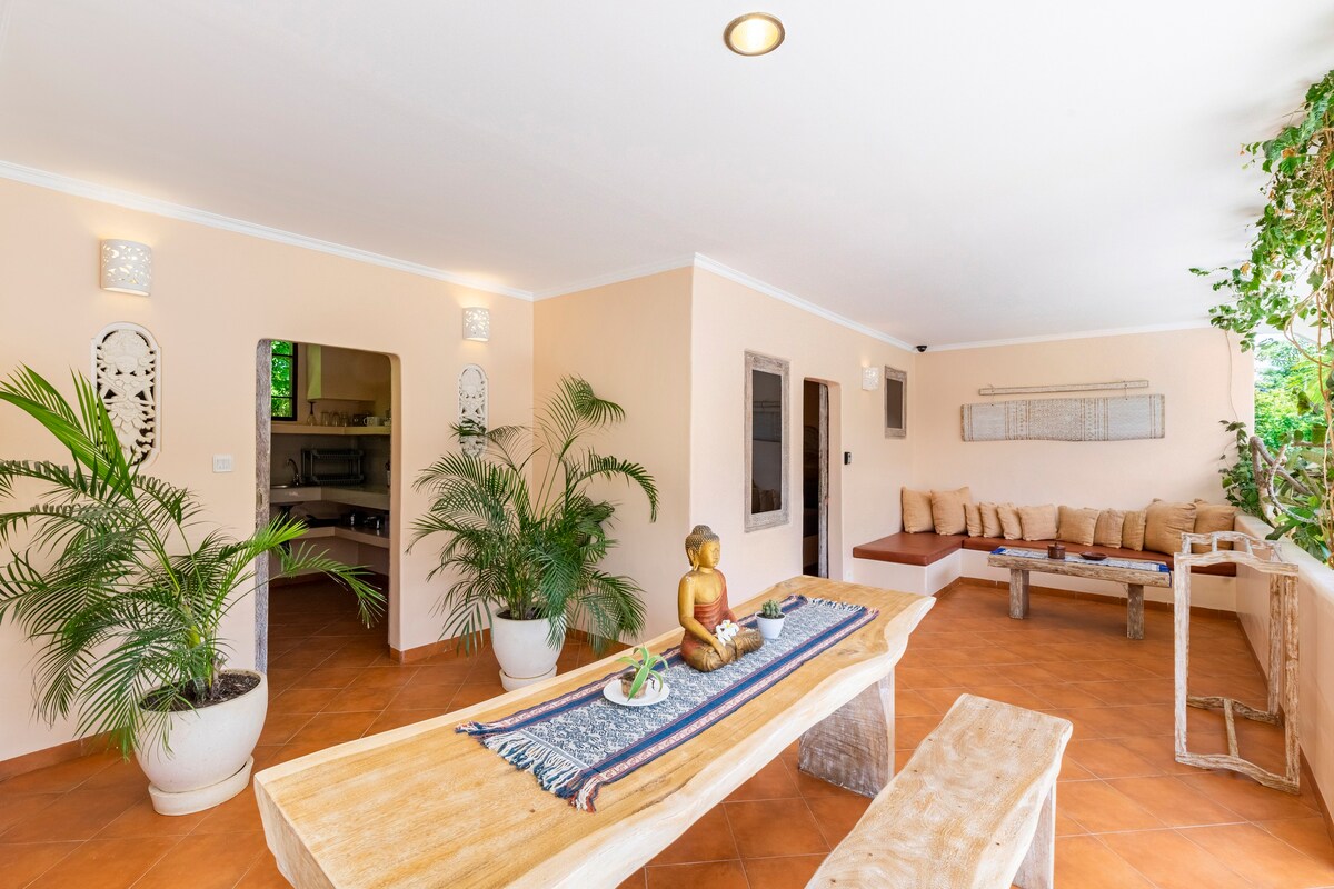 Discover many surprising ways to unwind in this self-contained Villa Bungalow within our sprawling estate. Wander lush gardens, sway in a vintage-style tandem swing, or relax by the natural stone pool. Soak in a designer tub or choose a book that tickles your fancy and relax on the breezy patio/veranda daybed. Your King Bed is like sleeping on a cloud. Also included: - Separate kitchen - Daily maid/housekeeping service - Up to 150mbps Wifi - 8-10 min walk to the beach - Peaceful, quiet