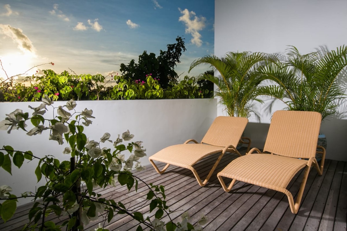 De'Oasis to nowoczesna tropikalna willa, zbudowana w lutym 2022 roku. To prawdziwa oaza, w której można się zrelaksować, ciesząc się zapierającym dech w piersiach widokiem. Znajduje się w górnej części dzielnicy Bukit, kilka minut drogi od plaż, gdzie można surfować lub odpocząć, Pepito, Savaya, White Rock itp. Budynek na 3 piętrach, z 2 sypialniami z balkonem i łóżkami wychodzącymi na ocean. Salon i kuchnia na 1 piętrze, sypialnie na 2 i 3 piętrze.