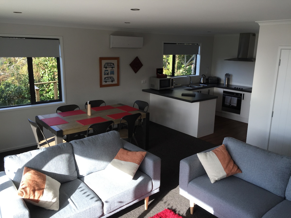 Znajduje się w centrum Westport, na terenie parku, pośród dojrzałych drzew i obok naszego domu rodzinnego. Nasz domek jest odpowiedni tylko dla dorosłych. Z 2 sypialniami, otwartym salonem, podwójnymi szybami z pompą ciepła, nową wykładziną w całym domu, to oszałamiający, ciepły i słoneczny domek. W odległości krótkiej przejażdżki/ spaceru do głównej dzielnicy handlowej, szlaku spacerowego Kawatiri Coastal i Pulse Recreational Centre z krytym basenem i siłownią.