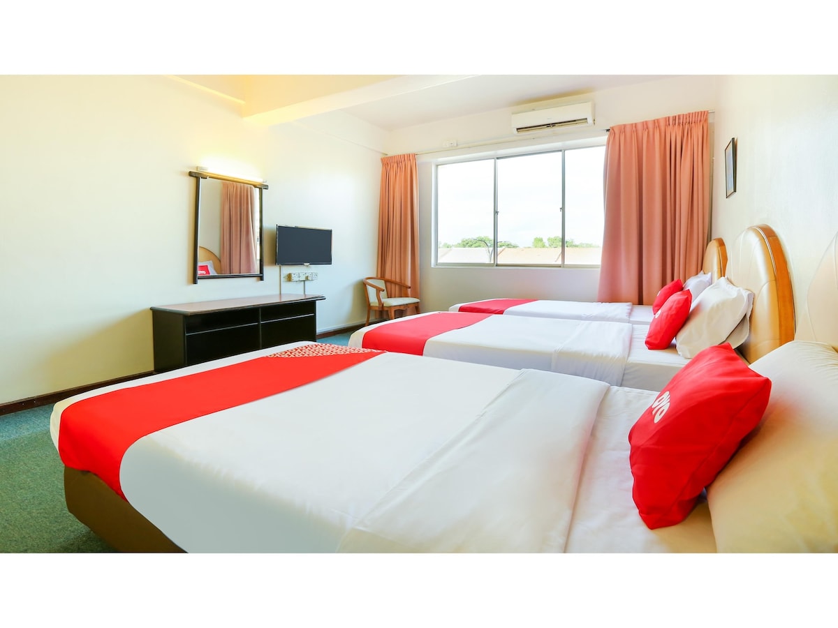 – 3 pokoje z klimatyzacją, 2 łazienki z podgrzewaczami wody - Lokalizacja: Kampung Berata, Segamat, Johor. (Obok Bndr Segamat shj) – powierzchnia domu (58 m²) – Pokój 1 = średnie łóżko (queen), klimatyzacja, wentylator i łazienka. – Pokój 2 = łóżko piętrowe, klimatyzacja, wentylator. – Pokój 3 = duże łóżko (king), klimatyzacja, wentylator. – Ręczniki kąpielowe i maty. - Smart TV, Wi-Fi, sofa, stół do jadalni, żelazko i deska do prasowania. – Kuchnia = naczynia/miski/kubki, łyżki/widelce, garnki do gotowania, kuchenka elektryczna, ryżowar, lodówka, dystrybutor wody i pralka - Parking dla 3 samochodów