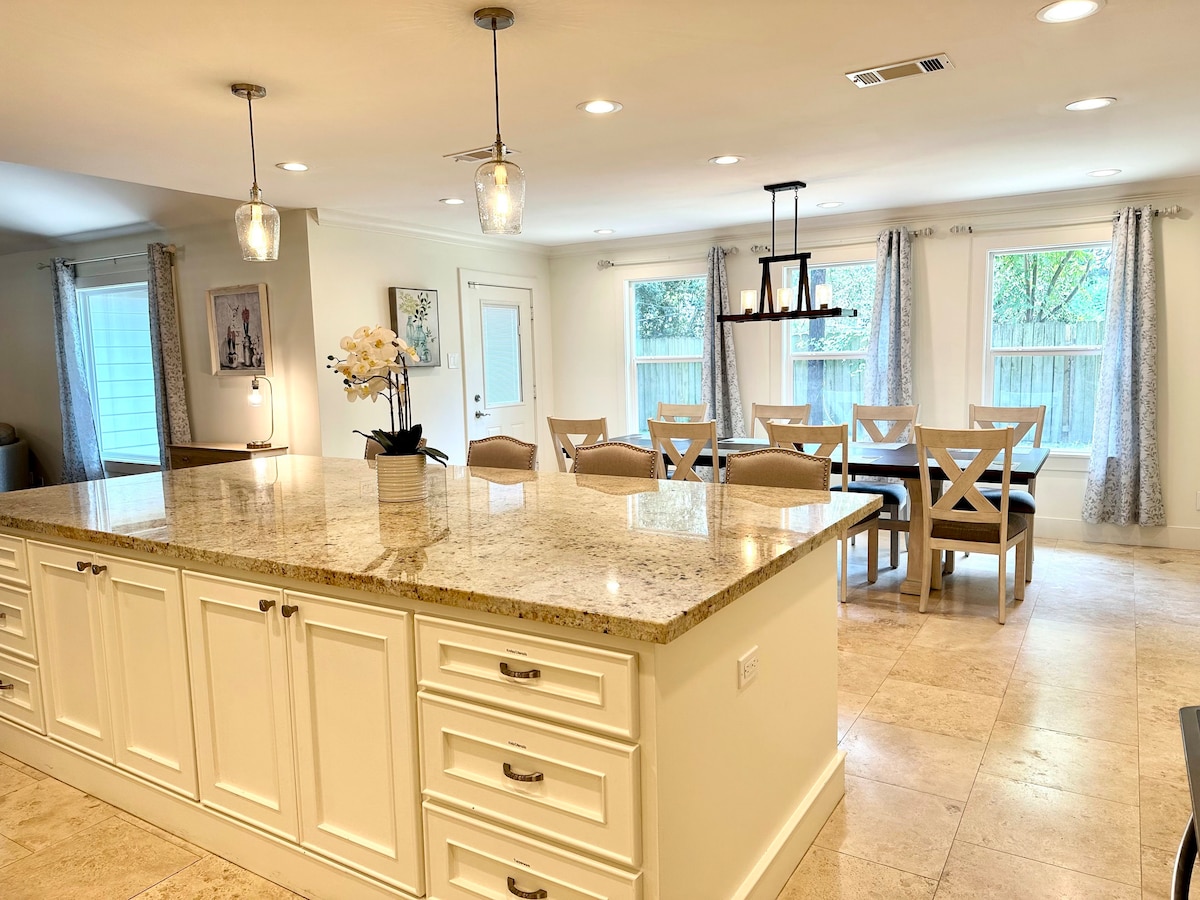 Podnieś poziom swoich wrażeń z Houston w naszym stylowym Airbnb położonym w samym sercu Uptown Houston. W chwili, gdy wejdziesz do środka, przywita Cię nowoczesny design i dużo naturalnego światła dzięki naszym dużym oknom. Przestronny układ domu z 3 sypialniami, które są również przyjazne dla rodzin, zapewnia doskonałe miejsce do spania po długim dniu. Kuchnia jest wyposażona w najwyższej jakości urządzenia do przygotowywania wszelkiego rodzaju posiłków. Jest też przestrzeń na zewnątrz, gdzie można się zrelaksować. Zarezerwuj pobyt
