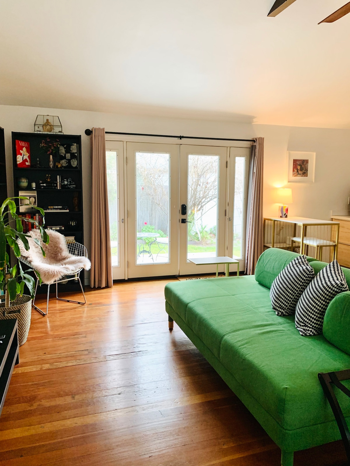 Uroczy domek gościnny w samym sercu Burbank z prywatnym wejściem bez klucza. Duże studio ma sklepiony sufit i francuskie drzwi, które wpuszczają jasne, naturalne światło. Odnowiona przestrzeń z mini kuchnią i luksusową łazienką z bardzo dużym prysznicem. Dom w stylu vintage z nowoczesnym akcentem, z Alexą „włącz światło, streamuj Netflix”, inteligentnym zamkiem, inteligentnym telewizorem itp. Ciesz się świeżymi cytrynami podczas wypoczynku na podwórku. Mieści 2 osoby dorosłe, jeśli przyjeżdżasz z dzieckiem, daj mi znać :)