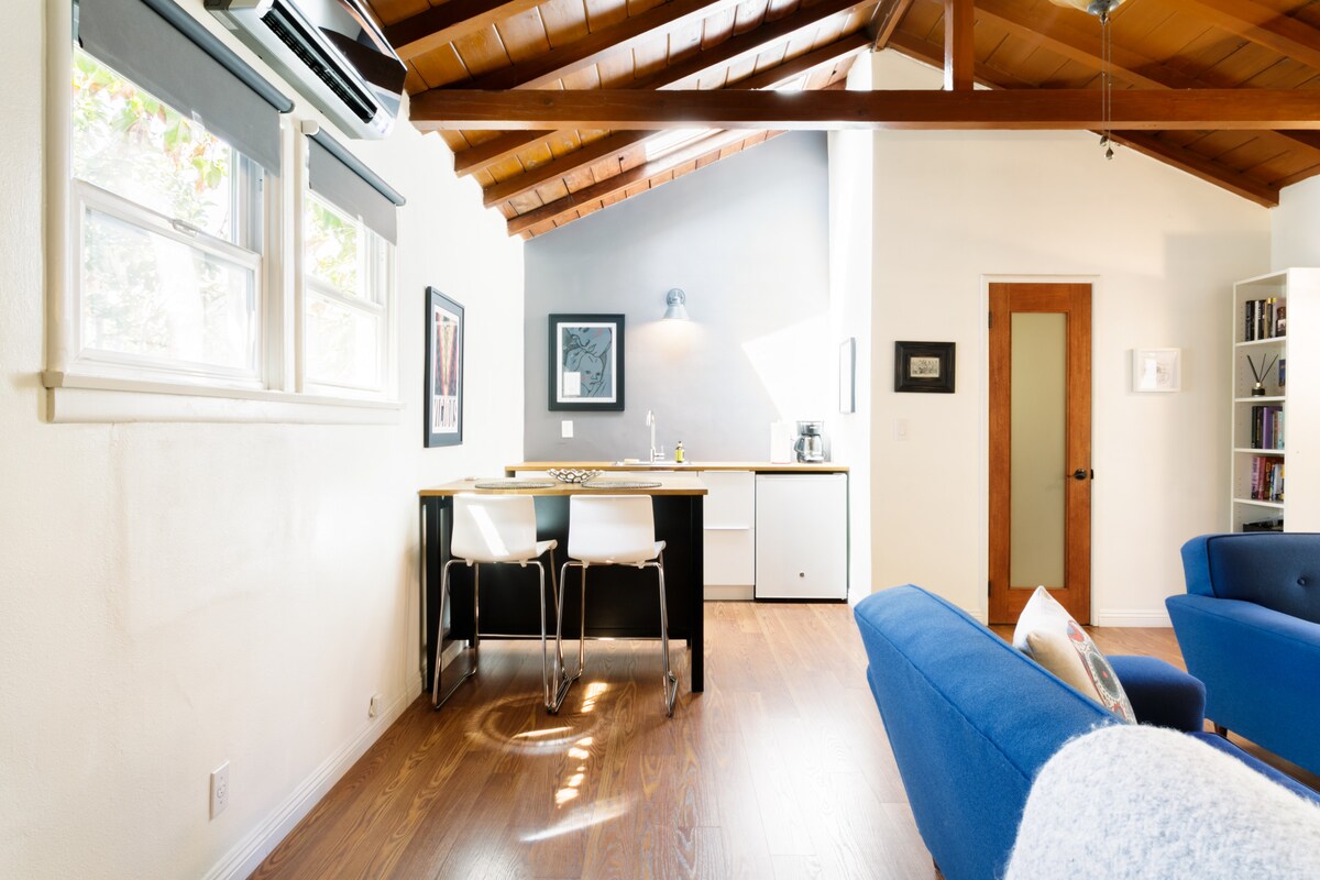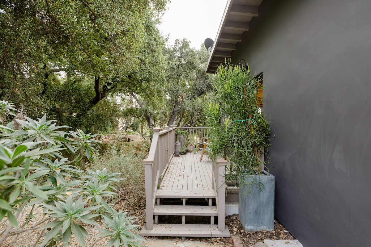 Przygotuj się na cały dzień z porannym napojem na tarasie domku na drzewie, a następnie zrelaksuj się w wannie lub zrób sobie przerwę pod sklepionymi sufitami przestronnego salonu po całym dniu zwiedzania Los Angeles. Współczesna sztuka i odważny mural w sypialni kontrastują z elegancką kuchnią i białymi ścianami. To wyjątkowa przestrzeń; duża, jasna, nowoczesna i bardzo prywatna. Wolnostojący budynek położony za naszym domem w stylu hiszpańskim w spokojnej okolicy Burbank. Sklepienie z oknem dachowym. Zupełnie nowa łazienka z prysznicem deszczowym i wanną. Duży salon i aneks kuchenny oraz ogromna sypialnia z dużą ilością miejsca do przechowywania. Jest tu dedykowane Wi-Fi i wygodna część biurowa. Dom jest pełen dzieł sztuki od artystów z Los Angeles, aby przenieść trochę ulic Los Angeles do komfortu Burbank. Goście będą mieli dostęp do dedykowanego Internetu Wi-Fi, Roku TV, Netfix, Amazon i HBO, jadalni na świeżym powietrzu, grilla. W razie potrzeby dostępna jest pralka i suszarka. Pensjonat jest oddzielnym wolnostojącym budynkiem położonym za głównym domem z prywatnym, bezkluczowym wejściem. Mieszkamy w głównym domu. Cieszymy się na spotkanie z Tobą! Mieszkamy w głównym domu, zaledwie kilka kroków stąd i będziemy dostępni, jeśli coś się wydarzy. Poznaj to, co najlepsze w obu światach, z cichym małym miastem w sercu dużej metropolii. Tętniące życiem atrakcje LA są w pobliżu, ale ta urocza dzielnica jest również domem dla urokliwych sklepów i restauracji. – Przystanek autobusowy mniej niż jedną przecznicę dalej. - Stacja metra North Hollywood oddalona o 3 mile. - Universal Studios znajduje się 15 minut od naszego domu samochodem. - Mnóstwo BEZPŁATNYCH MIEJSC PARKINGOWYCH NA ULICY. – Mniej niż dziesięć minut od lotniska Burbank. – Pięć minut od stacji Metrolink/Amtrack. - W odległości spaceru od centrum Burbank i społeczności Magnolia Park. Nasz pensjonat jest idealny dla ludzi z branży, którzy muszą być blisko szalonej energii Hollywood, ale którzy nadal lubią ciszę i spokój prywatnego wypoczynku. Dla tych, którzy chcą odkryć Los Angeles, jesteśmy blisko studiów, sklepów, Griffith Park, transportu publicznego i wszystkich głównych arterii. Jest jedno łóżko typu queen z nakładką z pianki termoplastycznej. W razie potrzeby do pokoju można dodać dodatkowe pojedyncze łóżko. Pensjonat posiada oddzielną kuchnię, jednak nie jest to pełna kuchnia. Nie ma kuchenki ani pieca. Jest kuchenka mikrofalowa, czajnik, toster i lodówka/zamrażarka. Obecnie nie przyjmujemy gości na pobyty długoterminowe.