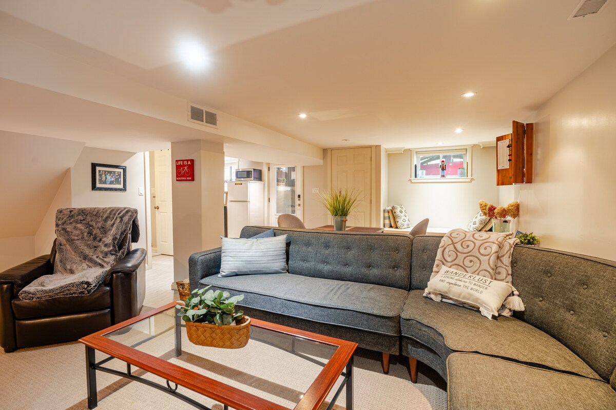 W odległości spaceru od pociągu Aldershot GO i kilka kroków od jeziora i przystani, ten w pełni wyposażony, trzyletni apartament w piwnicy jest wyposażony w łazienkę, kuchnię i oddzielne wejście. Dużo miejsc parkingowych w tej pięknej, bezpiecznej i spokojnej dzielnicy. Apartament zawiera wszystkie niezbędne rzeczy, których będziesz potrzebować podczas pobytu, a jeśli czegoś brakuje, daj nam znać, ponieważ postaramy się spełnić Twoje prośby.