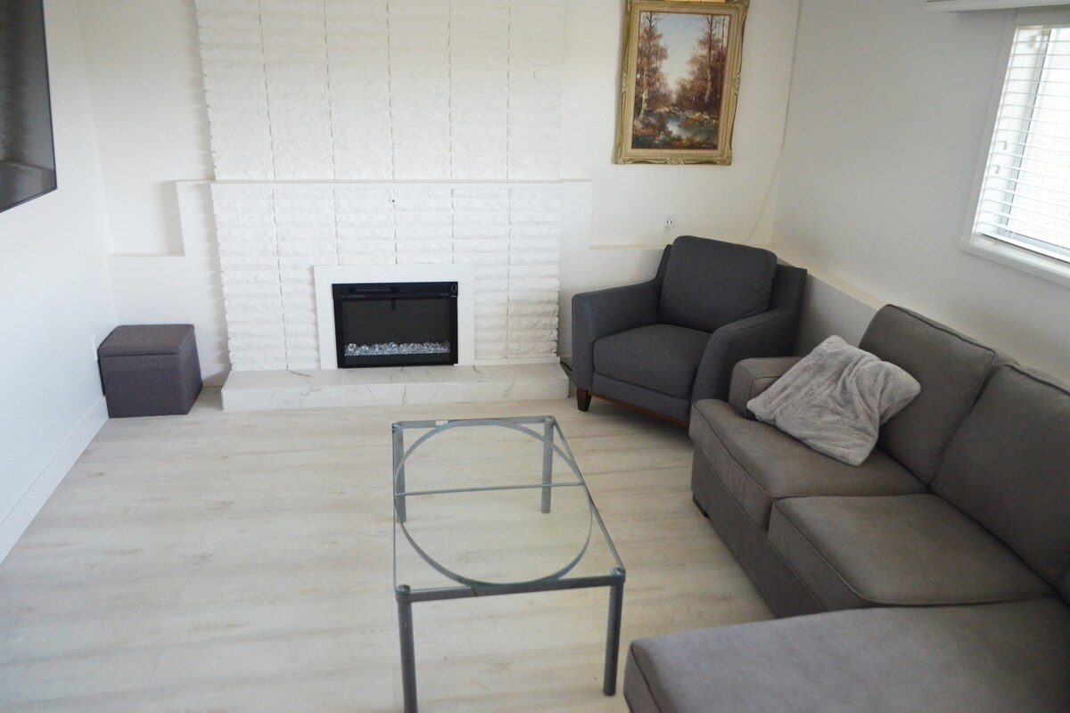 Look no further, newly renovated 1 bedroom suite with everything you need for a short or long stay. A quick 5 minute stroll to Nanaimo skytrain that will take you downtown in 10 minutes. Grocery nearby and 10 min walk to Trout Lake for trails and nature. Gas fireplace for a cozy evening. Outdoor patio and bbq for sunny days.