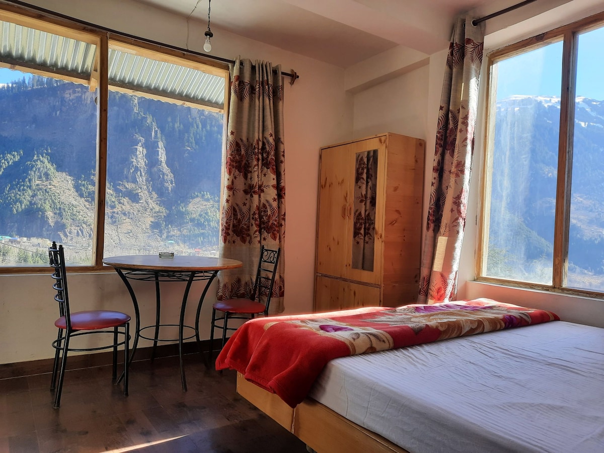 Luxurious traditional-style 2 Room set in Haripur, Manali, with a 360° unrestricted mountain view and tranquility. ✨ Highlights: 🚗 Spacious Parking 🍀 Restaurants, Waterfall, Bank, ATM, Gym nearby 🍀 Veg, Vegan and Jain food friendly property. 🏡 Cozy & Comfortable Ambiance With Full Tower 5G Coverage 🚿 1 Attached Washroom with Hot Shower 📺 Jio AirFiber (100 mbps with backup) 🌲 Surrounded by Nature More than just a stay, our space is a tribute to the earth