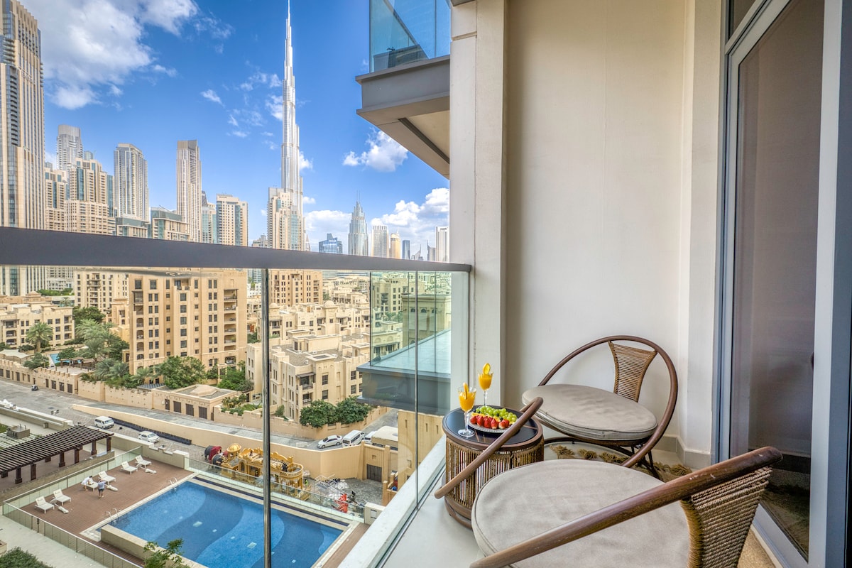 Luksusowe 2 sypialnie • Widok na Burdż Chalifa • Prywatne jacuzzi • W odległości spaceru od Dubai Mall