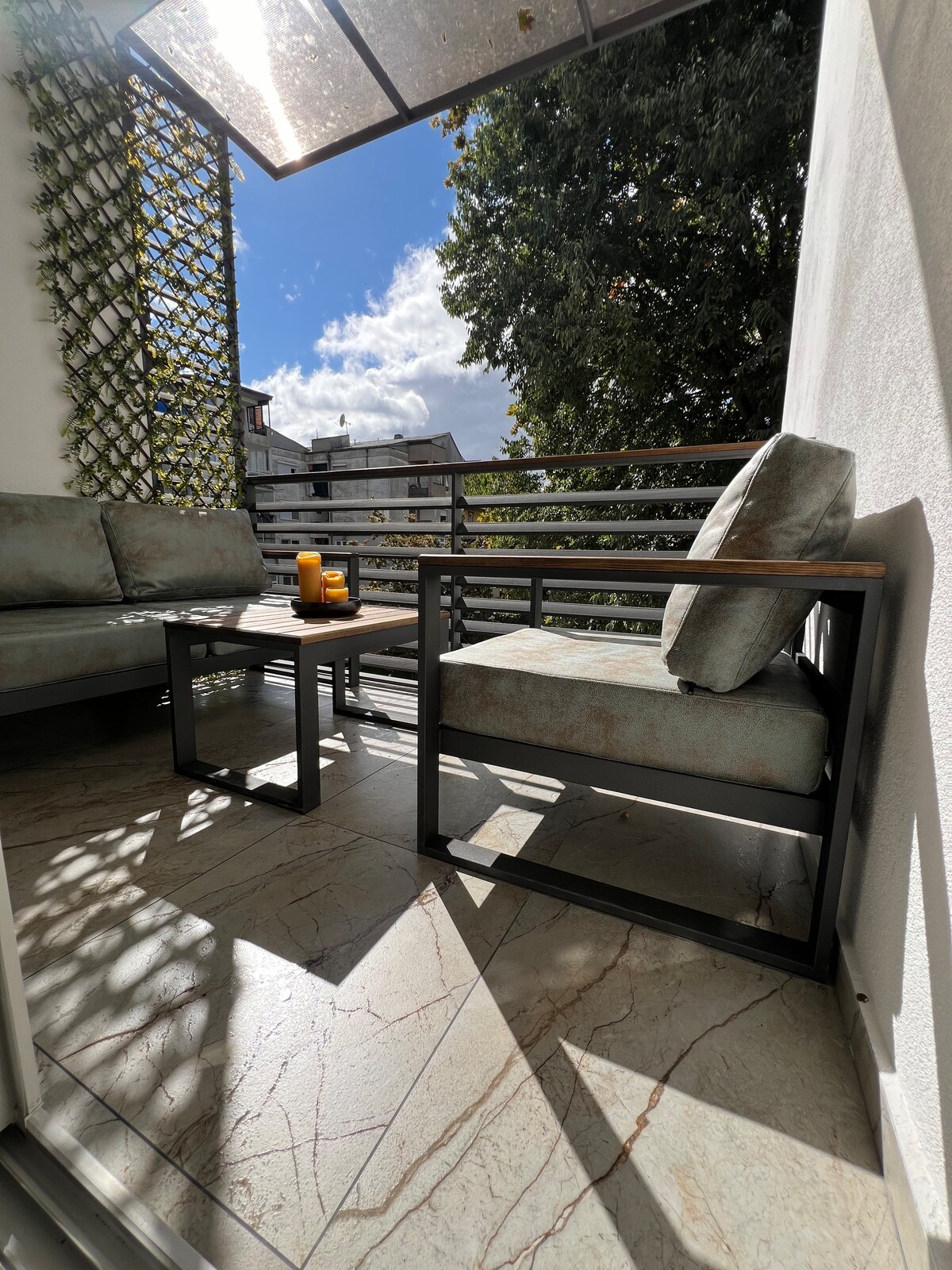 Peaceful & stylish apartment in a quiet neighborhood, just 5 minutes from Skopje City Mall & Esgate Mall, and 10 minutes from the city center. Perfect for couples or solo travelers. Enjoy two private terraces, a cozy bedroom with a premium bed, a fully equipped kitchen, fast WiFi, smart TV & air conditioning. Located on the 2nd floor (no elevator). Free public parking nearby. Ideal for short or long stays. Feel at home while enjoying privacy and comfort. Welcome to Dimov Urban Stay!