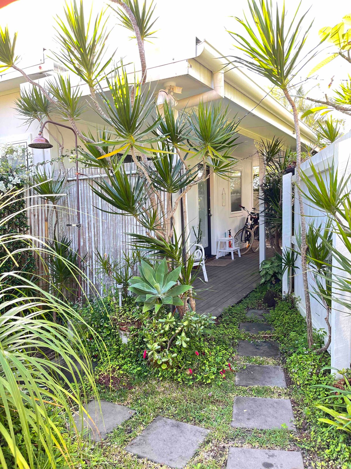 Zamieszkaj w naszym wyjątkowym, przytulnym domku na wybrzeżu, kilka kroków od spokojnej plaży Tallows Beach. Poczuj wyluzowany klimat plaż Suffolk, w pobliżu najlepszej kawiarni i piekarni w mieście, a także lokalnych restauracji i pubu. Zrelaksuj się na tarasie z prysznicem na świeżym powietrzu, otoczonym tropikalnymi ogrodami. Rozkoszuj się spokojnymi nocami na lnianych prześcieradłach. Luksusowa stylowa łazienka z włoskimi płytkami, dużym prysznicem, bidetem. Dla prywatności drzwi przesuwne łączą kuchnię i sypialnię. Klimatyzacja dzielona, wentylator sufitowy. Uzupełniający rower Lekker