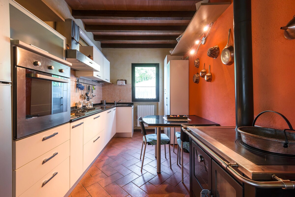 Dom w stylu rustykalnym, położony na wzgórzach Montegibbio w gminie Sassuolo, w małej wiosce, z widokiem na park i zamek. Dom znajduje się w odległości samochodem: -5 minut od centrum Sassuolo - 13 minut od rezerwatu przyrody Nirano - 20 minut od Muzeum Ferrari Maranello - 30 minut od centrum Modeny - 40 minut od Rcf Arena Możliwość rozpalania dwóch kominków