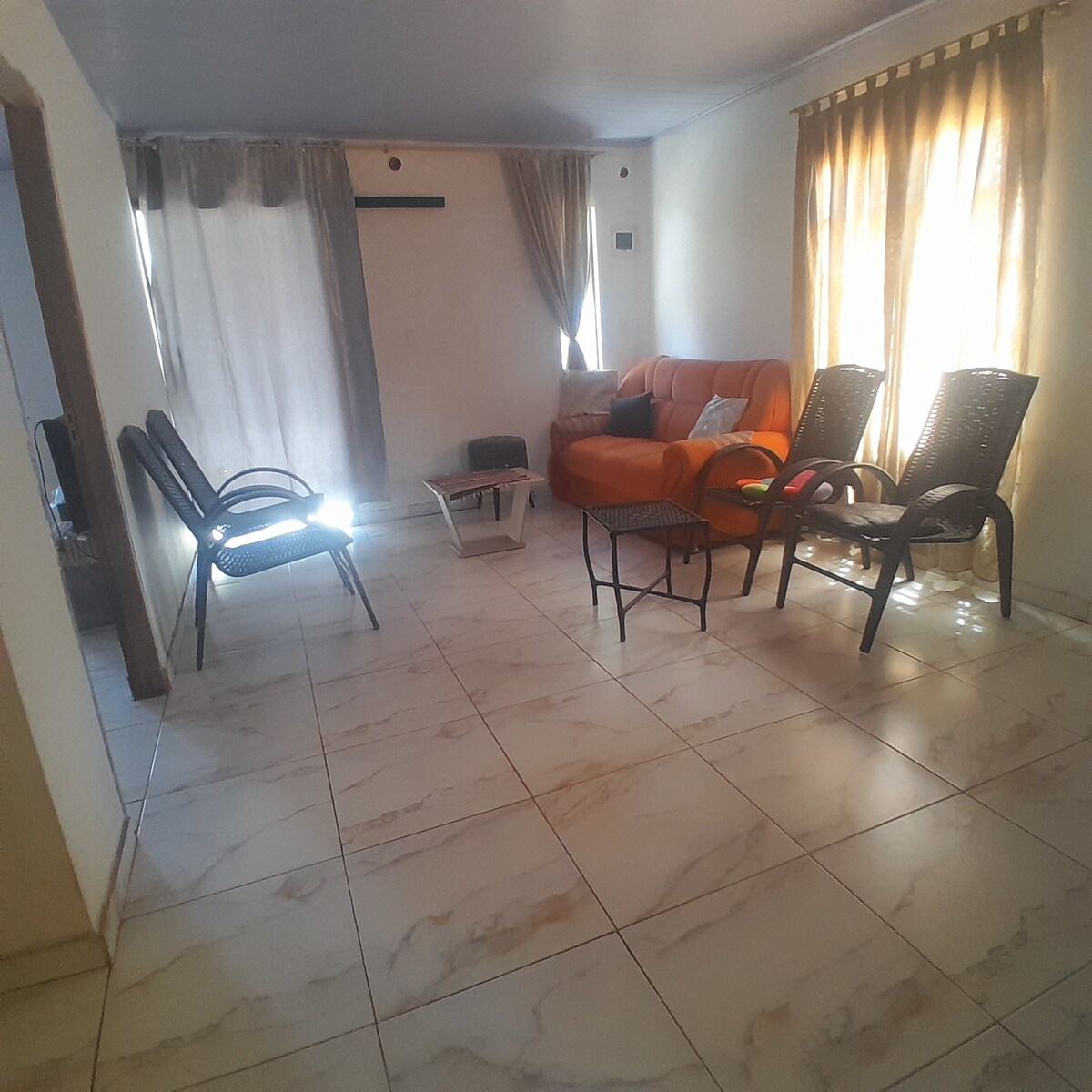 This stylish place is perfect for small group trips or a large family. Top-line kitchen, grill, screened-in porch, deck with large patio, fire pit and huge living spaces filled with sparse furniture, local ceramics, and innovative Paraguayan design. Close to historic places (Vapor Cué), breathtaking landscapes and 20 minutes from cascades in Valenzuela and Piribebuy. Features one master bedroom with cable and AC and two additional smaller bedrooms without AC, shared bathroom and outdoor shower.