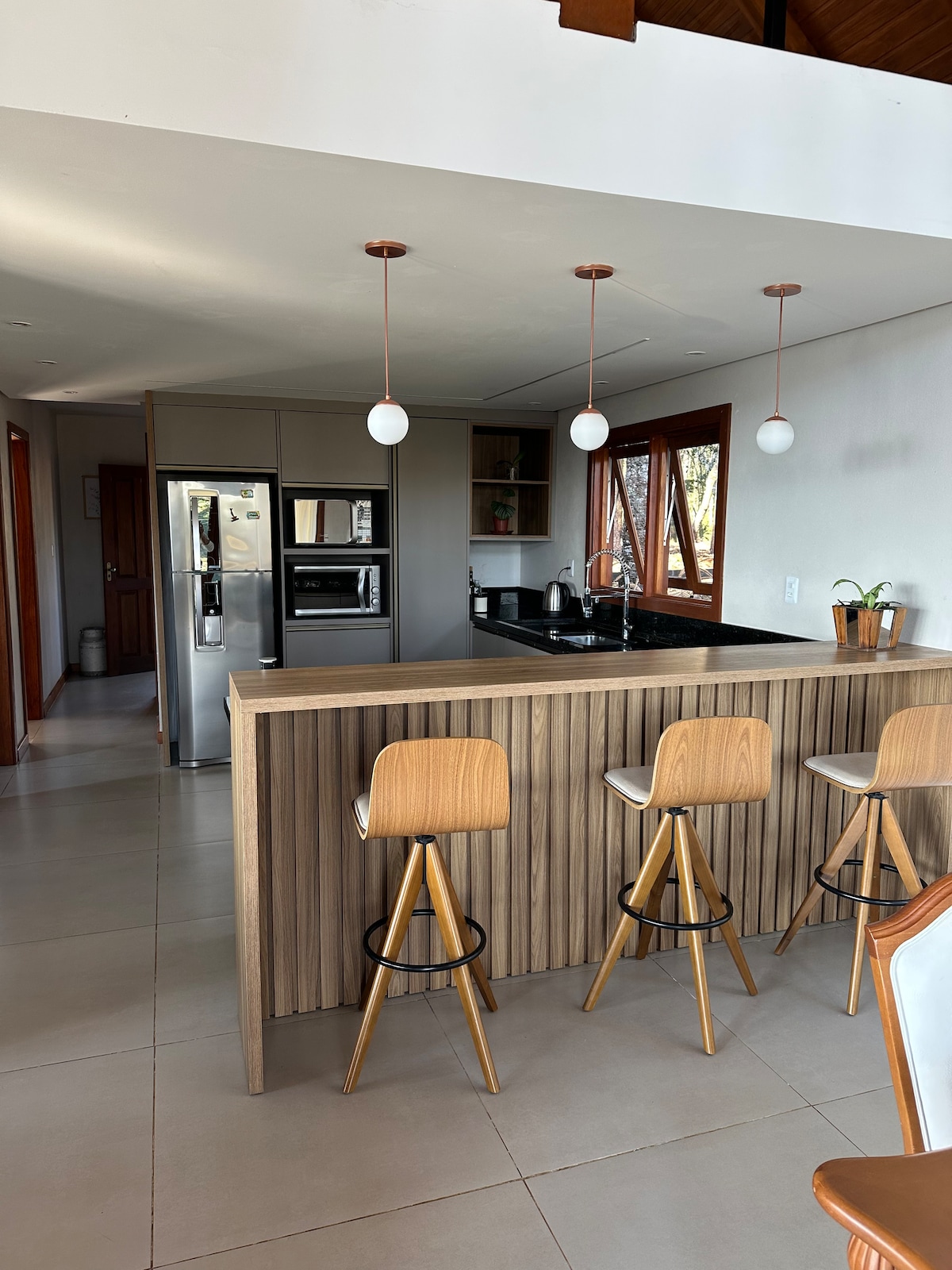 Znajdujemy się w środku Gramado (15 minut jazdy od centrum miasta). Mamy do dyspozycji cały nowy sprzęt hotelowy, podgrzewaną wannę z hydromasażem (zapewniamy ręczniki, szlafroki, sole do kąpieli), pełną kuchnię z płytą kuchenną, lodówkę, naczynia, garnki, sztućce i ekspres do kawy. Mamy również telewizję Smart, Wi-Fi, kominek (z drewnem), klimatyzację i balkon z widokiem na góry. W naszym ogrodzie znajduje się punkt widokowy, z którego można podziwiać przyrodę. W razie pytań jestem do dyspozycji!