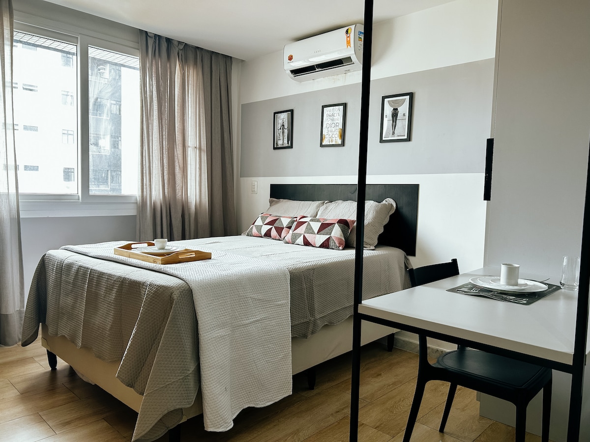 NOWE mieszkanie zaprojektowane z myślą o najlepszych doświadczeniach na jednej z najpiękniejszych plaż João Pessoa. NIE JESTEŚMY SIECIĄ HOTELOWĄ! Posiadamy balkon z widokiem na plażę Cabo Branco, a do Twojej dyspozycji będą: - Pościel i ręczniki - Wi-Fi - Smart TV - Pełne wyposażenie kuchni (lodówka, kuchenka, kuchenka mikrofalowa, ekspres do kawy, opiekacz do kanapek, talerze, szklanki, kieliszki, sztućce itp.) - Klimatyzacja - Część wspólna (basen, restauracja, pralnia, garaż, kostkarka do lodu) - Recepcja czynna 24 godziny na dobę