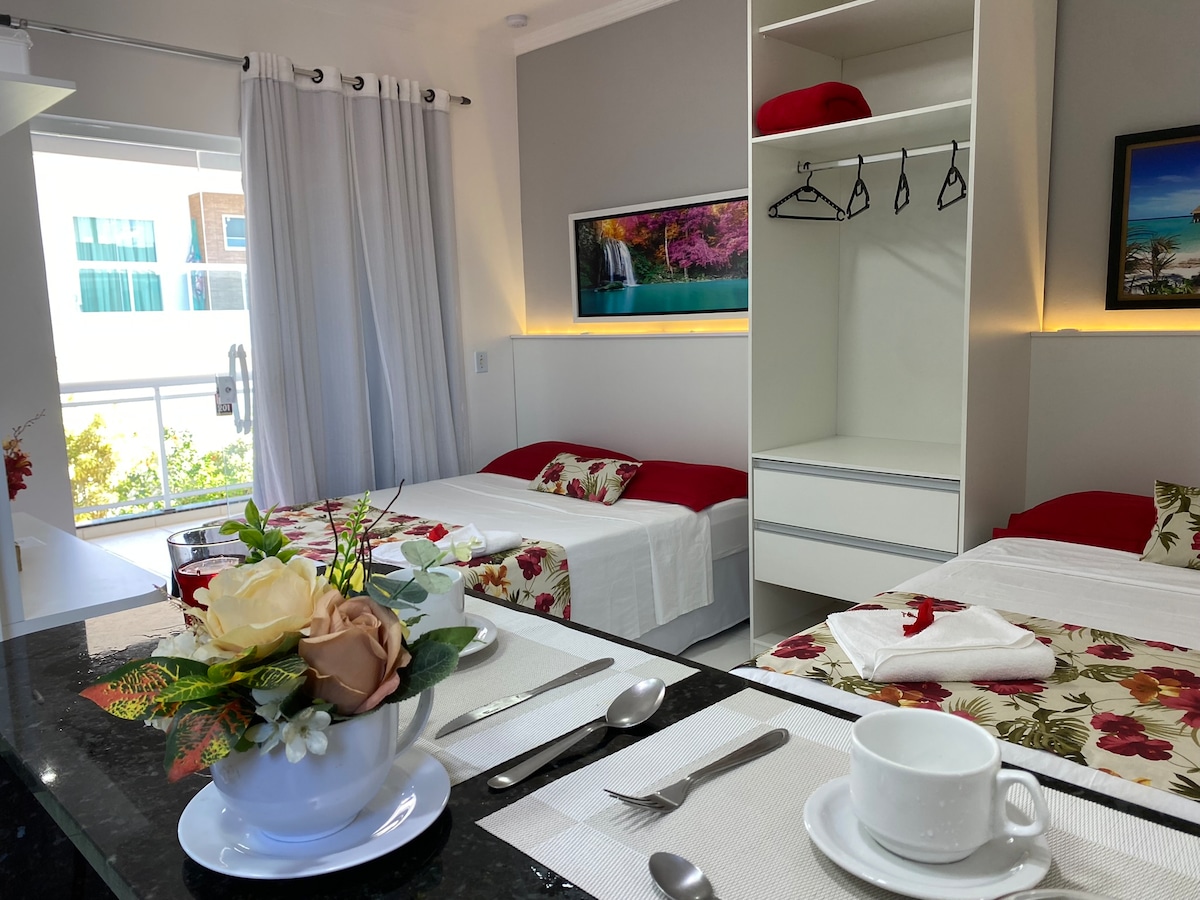 Loft dla maksymalnie 4 osób w doskonałym osiedlu w Geribá - Búzios, z basenem, sauną i parkingiem, mniej niż 5 minut od plaży! Pokój wyposażony w łóżko małżeńskie i pojedyncze, telewizor SmartTV, klimatyzację typu split, zasłonę i szafę. W salonie oprócz klimatyzacji i telewizora SmartTV znajduje się telewizja kablowa, rozkładana sofa oraz sofa, która w razie potrzeby zamienia się w pojedyncze łóżko. Kuchnia wyposażona w lodówkę, kuchenkę, kuchenkę mikrofalową i sprzęt AGD. Internet Claro dla Twojej wygody.