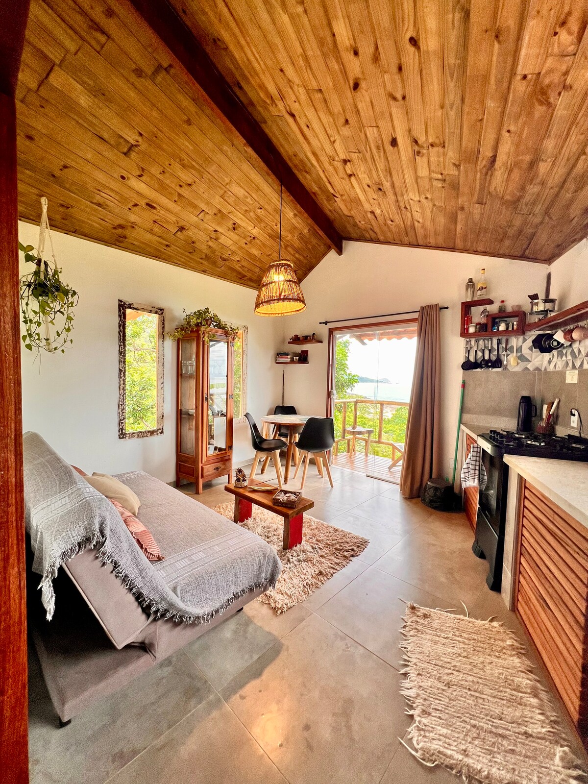 Charmosos estúdios self catering na linda praia do Prumirim. Entrada independente, pátio privado, cozinha totalmente equipada, cama queen size de alta qualidade, sala de estar confortável. Tudo projetado com qualidade, conforto e estilo. Grandes janelas panorâmicas que vão fazer você se sentir entre as copas das árvores! Este é um lugar mágico para quem procura uma fuga romântica à beira-mar conectando-se à natureza sem comprometer seu conforto. Tudo meticulosamente limpo, sanitizado e seguro!