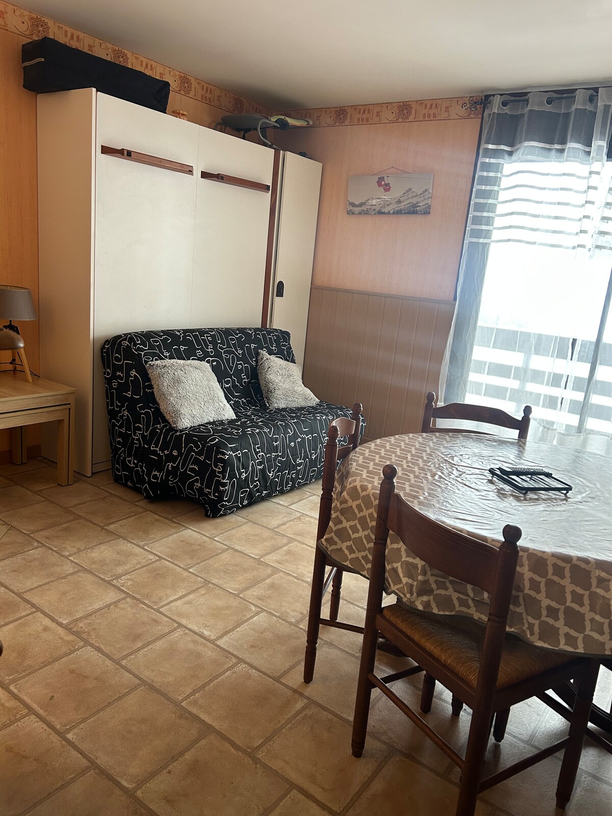 Około odnowiony apartament o powierzchni 30 m2 (budynek ze sklepami w centrum handlowym) ze wspaniałym widokiem na Arbizon i dolinę St Lary Soulan. Salon z 2-osobowym rozkładanym i 2-osobowym BZ. Kominek niefunkcjonalny z kominkiem dekoracyjnym Alcove przy wejściu z 3 łóżkami piętrowymi z przesuwanymi drzwiami (aby stworzyć separację z salonem) i telewizor z odtwarzaczem DVD. Piwnica przed prywatnym mieszkaniem w celu podrzucenia sprzętu narciarskiego