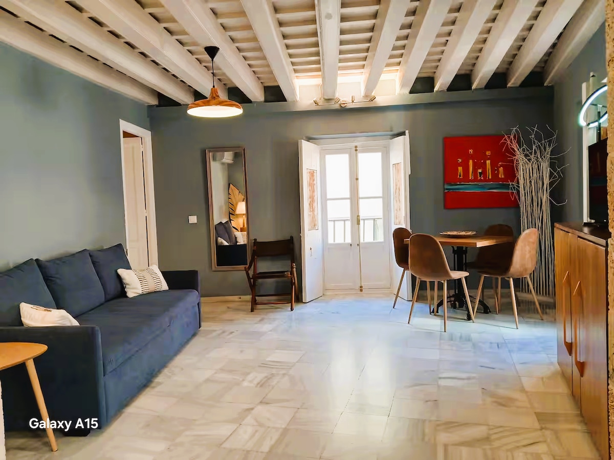Mieszkanie całkowicie odnowione w 2021 roku, z zachowaniem esencji Kadyksu, położone obok katedry i morza, przy cichej ulicy dla pieszych. Wchodząc do obiektu, zobaczysz esencję Kadyksu z typowym patio sąsiadów, znajdującym się na drugim piętrze bez windy. W tym mieszkaniu mam nadzieję i życzę Ci, abyś mógł cieszyć się wspaniałym miastem Kadyks, spacerując po jego uliczkach dla pieszych bez samochodu.
