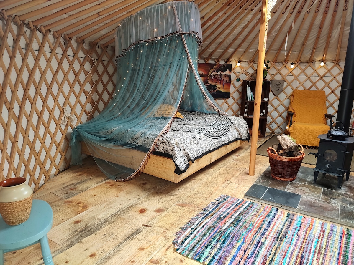 Witaj w naszej tradycyjnej mongolskiej jurcie. Kiedy nadejdzie czas, aby wyruszyć poza sieć, mamy idealne miejsce. Położony u podnóża Cadair Idris, otoczony naturalnym pięknem i czystym spokojem. To Twoja szansa, aby się odłączyć i naprawdę ponownie połączyć ze sobą. Z dala od świata, spokojnie, leczniczo i z nutą przygody! Zanurz się w przyrodzie, relaksując się przy naszym piecu opalanym drewnem. Wieczorem można rozpalić ognisko i podziwiać rozgwieżdżone niebo, które zapiera dech w piersiach.