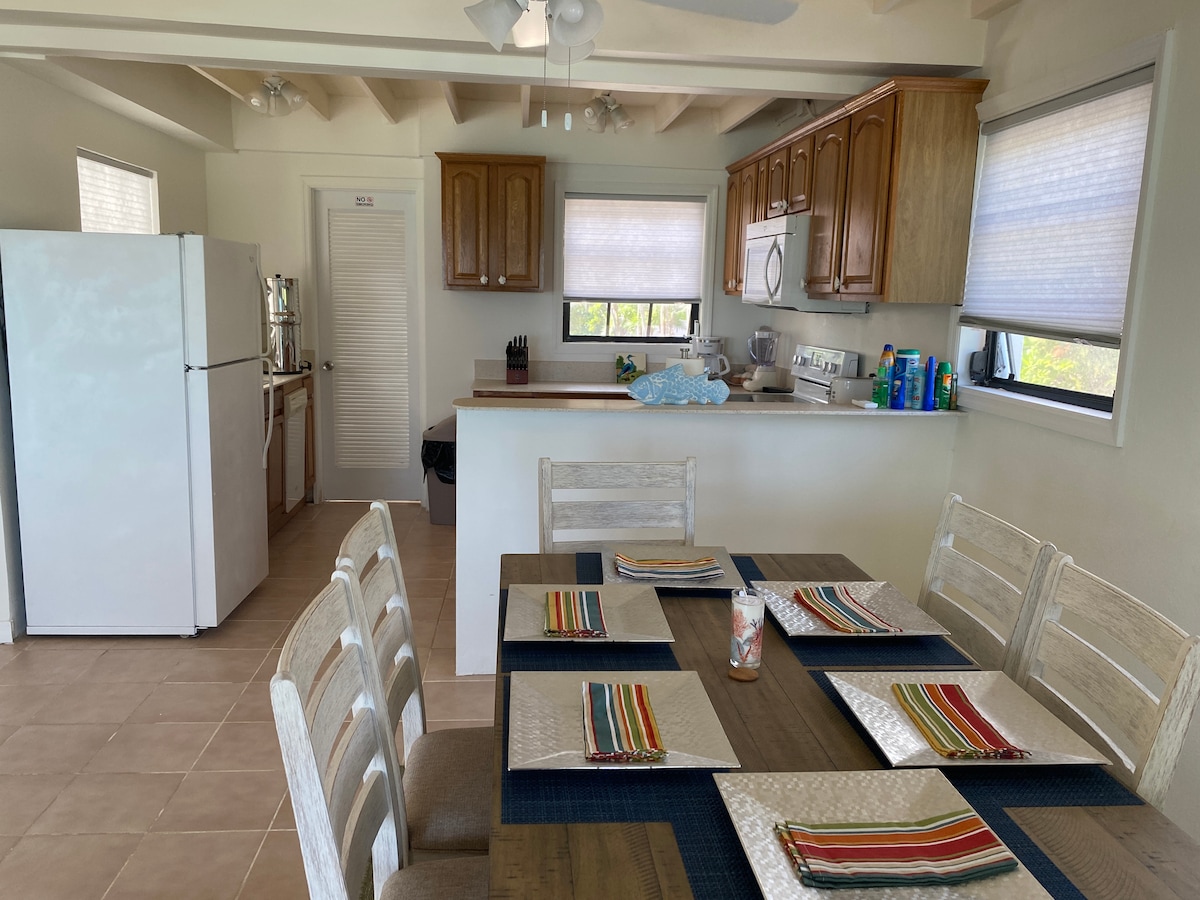 Jasny i przestronny domek parterowy położony 250 metrów od pięknej Grace Beach z piaskiem i turkusową wodą. Grill, Wi-Fi, pełna kuchnia, duże łóżko, sofa typu queen, klimatyzacja, pralnia, ręczniki i pościel oraz telewizja kablowa. Weź ze sobą krem do opalania!