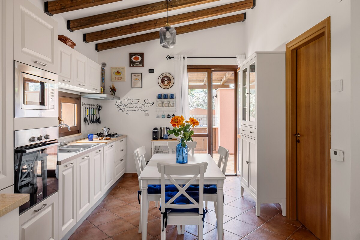 Dom w Cala Bianca, pomiędzy morzem a gajami oliwnymi.