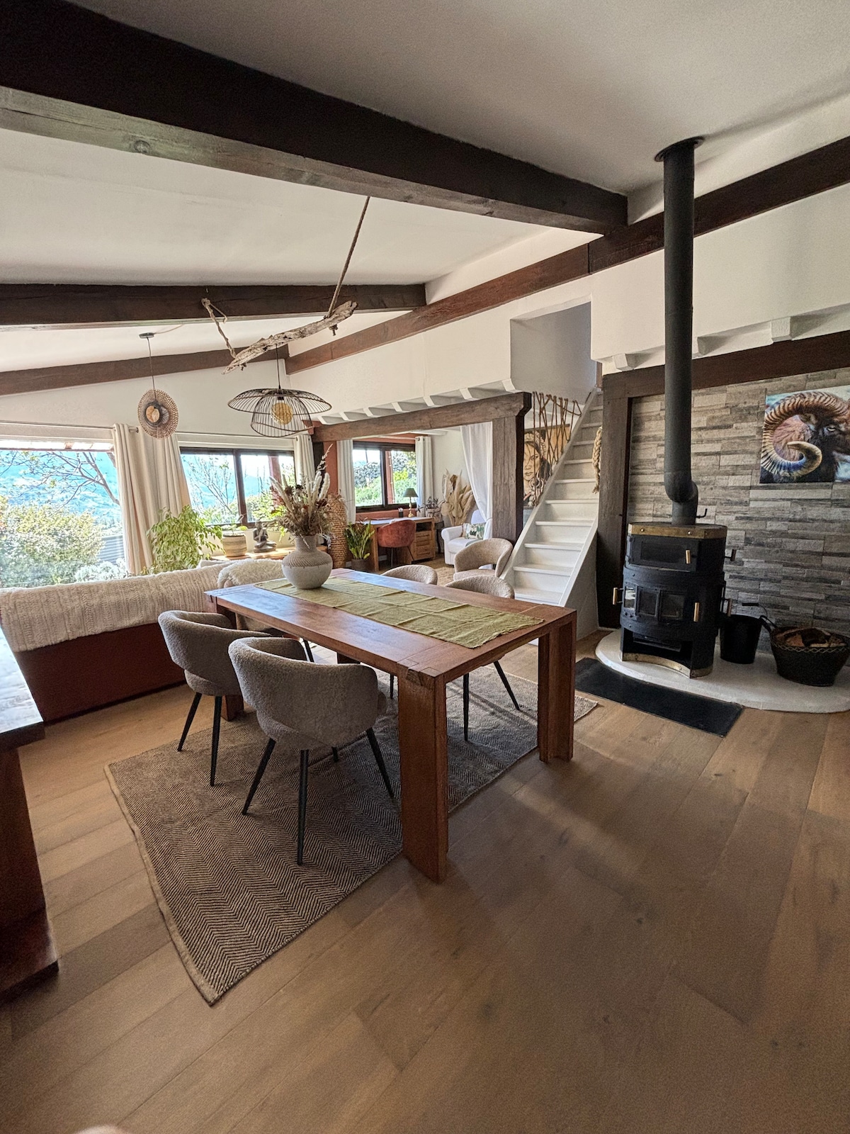 Welcome to La Bergerie, an eco-lodge nestled in the heart of the Corsican mountains. A peaceful retreat where nature, silence and comfort meet. The house sleeps up to 6 guests: two upstairs bedrooms and a bright living room with sofa bed. Fully equipped kitchen, modern bathroom and linen provided. Tea, coffee, chocolate, spices and olive oil await you. In cooler seasons, the wood stove warms cosy mountain evenings.