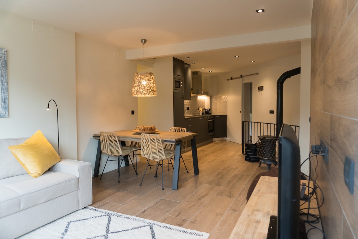 Es un apartamento tipo loft, íntimo y acogedor para disfrutarlo sólo vosotros, no hay más huéspedes, un lugar con mucha personalidad y encanto en medio de montañas y naturaleza, está situado dentro de una casa emblemática en el centro de Estamariu, un bonito pueblo del Pirineo Catalán a 20 minutos de Andorra. Si os gusta el cine en pantalla grande tenéis la posibilidad de disfrutar de tu película favorita en su sala de cine privada, el séptimo arte en el centro de un privilegiado entorno rural.