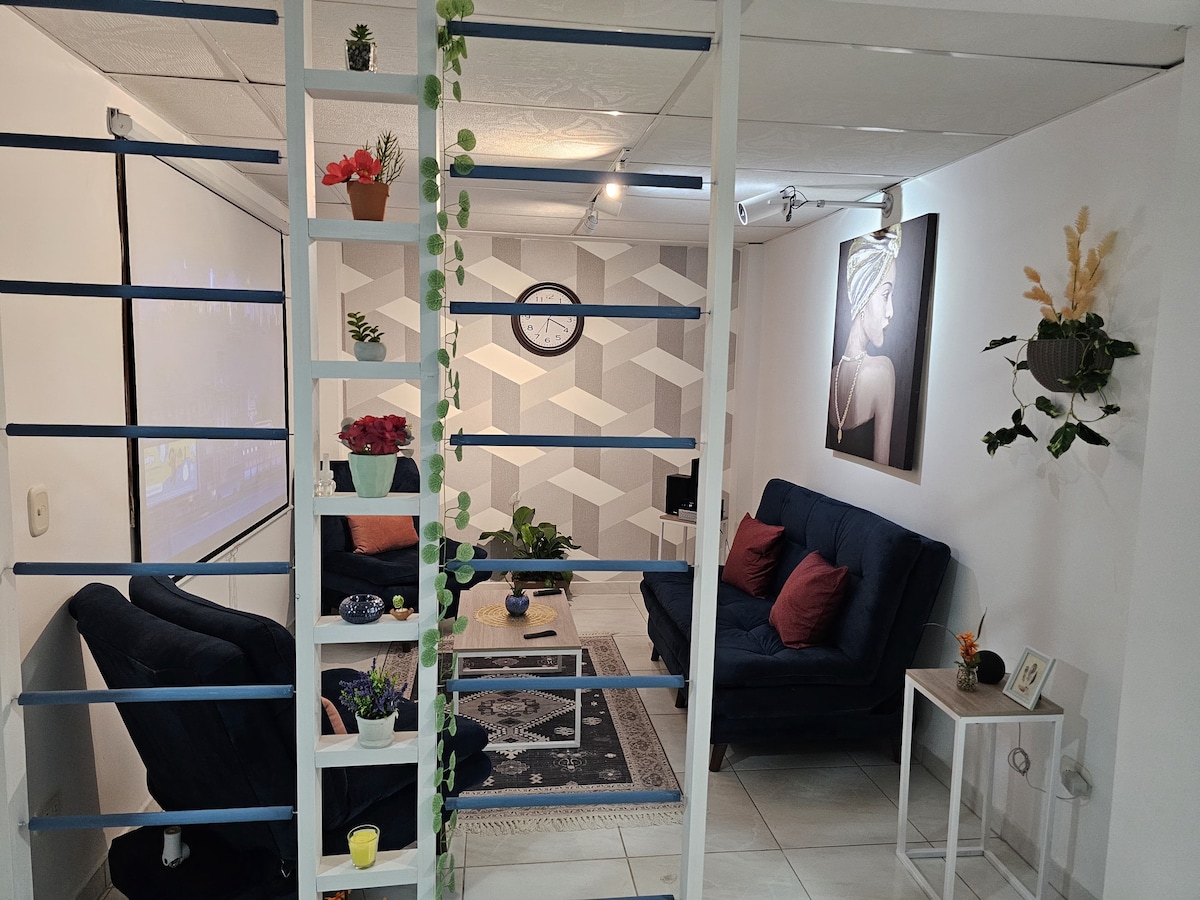 Położony w samym sercu Santa Rosa de Cabal, nasz apartament łączy w sobie nowoczesność i wygodę. Ciesz się kinem domowym z projektorem, Alexą i stylowym klimatem pełnym naturalnych detali. Zrelaksuj się w ogrodzie na świeżym powietrzu lub odkryj lokalne jedzenie. Przytulne pokoje, w pełni wyposażona kuchnia i stylowo urządzone przestrzenie sprawiają, że jest to idealne miejsce na odpoczynek i przeżycie wyjątkowych chwil w stolicy gorących źródeł i chorizo.