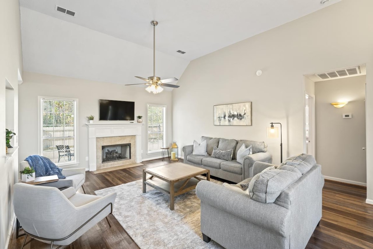Newly renovated home with new furnishings in a quiet, family-friendly neighborhood. Features 2 king beds, bunk bed for kids, fully equipped kitchen, 55" TV, and cozy living area. Fenced backyard perfect for pets (dogs only, $130 fee per pet ). Just 20 minutes from Oak Mountain State Park for hiking, biking, fishing, and a bird sanctuary. Front doorbell, driveway & backyard cameras provide peace of mind. Perfect for families and groups! Looking forward to hosting- Reach out if you need anything!