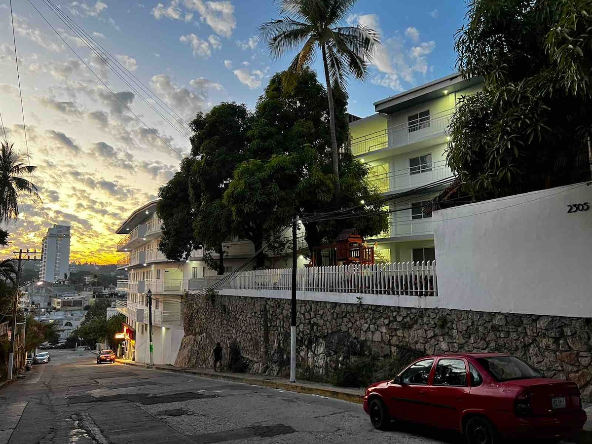 Przytulne mieszkanie z doskonałym widokiem na zatokę Acapulco. Prywatność i brak hałasu, aby mieć przyjemne wakacje. Dwie sypialnie, dwie pełne łazienki, wyposażona kuchnia, klimatyzacja i wentylatory sufitowe, aby schłodzić całe mieszkanie. Basen znajduje się kilka kroków od Ciebie, ciesz się widokiem. Mieszkanie zostało niedawno odnowione, więc większość rzeczy jest nowa i gotowa do użycia. Doskonała lokalizacja, aby cieszyć się plażami.