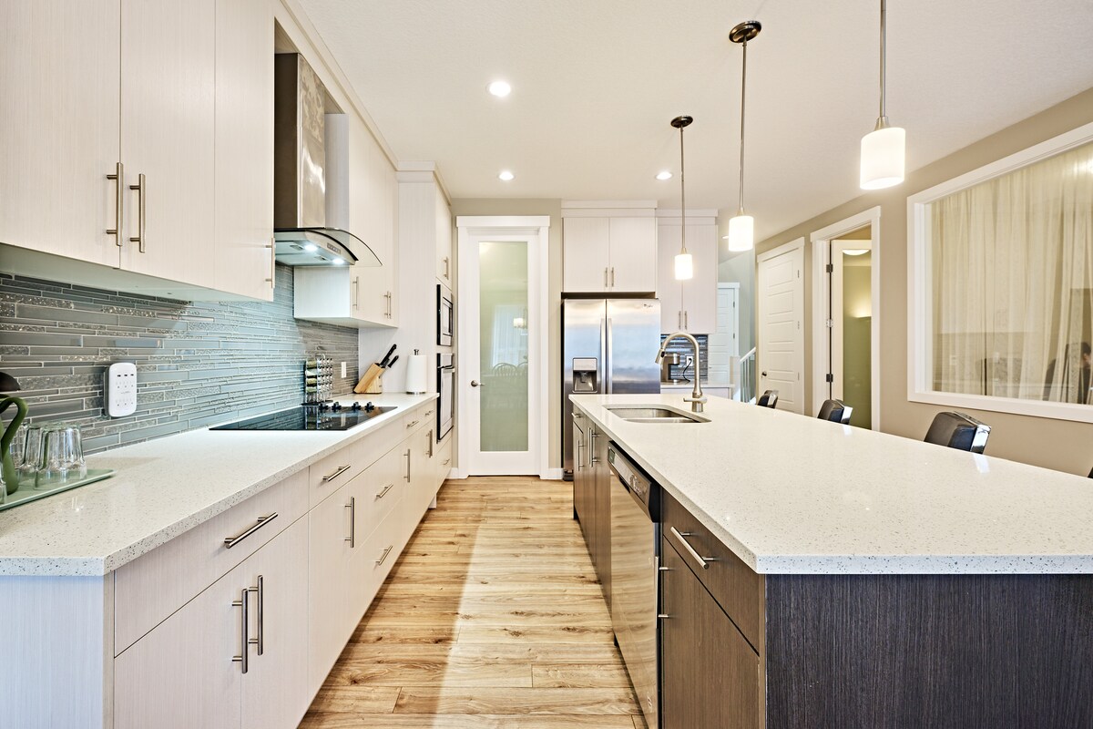 Poznaj szczyt komfortu w naszym nowym, pięciopokojowym mieszkaniu typu duplex w południowo-zachodnim Calgary. Dzięki 3 wygodnym łóżkom typu king, relaksującej wannie z hydromasażem i podwójnemu garażowi ten dom na nowo definiuje luksus. Apartament w suterenie z pełnowymiarowymi urządzeniami, kominkiem i najwyższej klasy wykończeniem zapewnia niezapomniany pobyt. Poznaj luksusowe życie w Calgary! Ten przestronny obiekt jest idealny dla rodzin lub grup poszukujących wygody i stylu. Zrelaksuj się w prywatnej wannie z hydromasażem po całym dniu zwiedzania miasta.