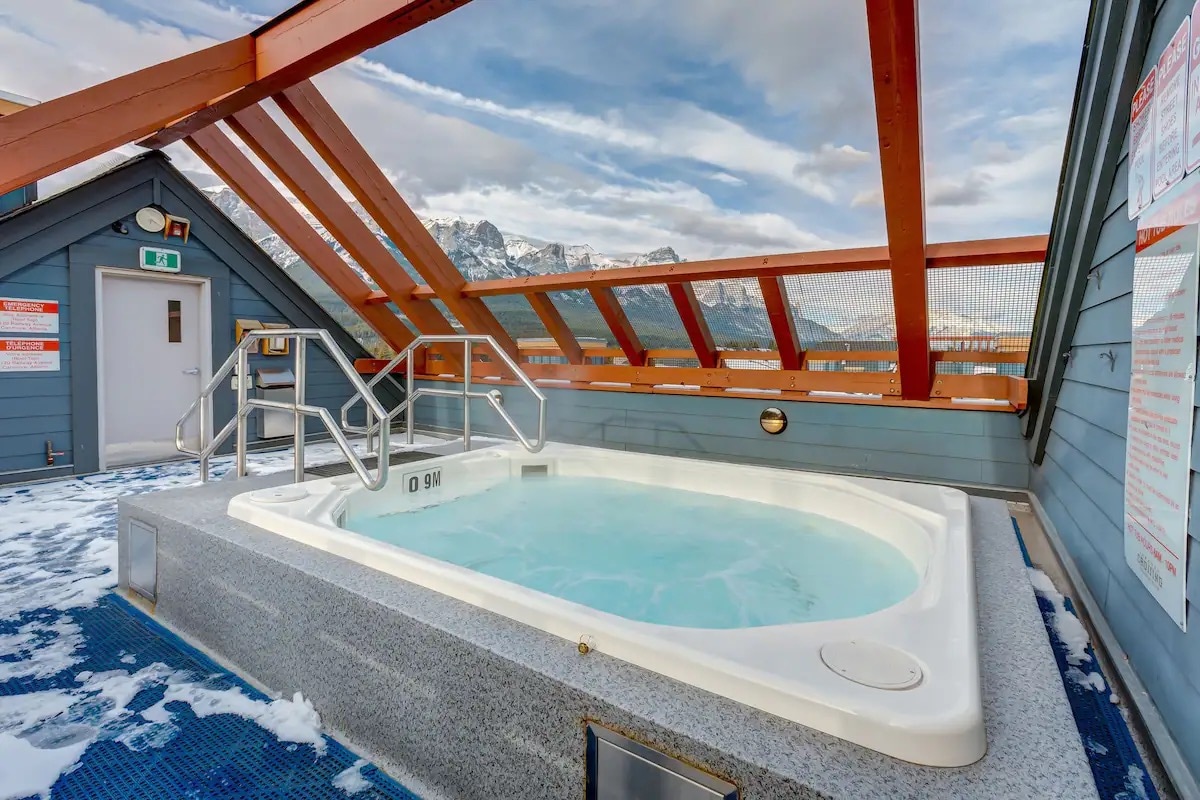 Welcome to the luxury getaway in the heart of Canmore! Luxurious Penthouse Unit with stunning mountain views! - This luxurious and updated multi-level Penthouse is a South facing corner unit with spectacular views of nature. High end and log style furniture created the modern vacation home you have been going for. The fitness center and romantic open air rooftop hot tub with 360 degree Bow Valley Views are conveniently placed just steps away.
