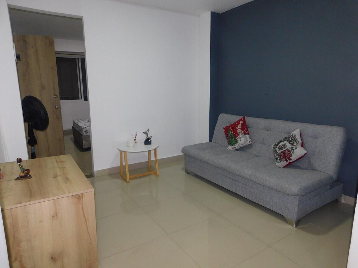 Apartament znajduje się w południowo-środkowej części miasta Cali, lokalizacja jest doskonała, ponieważ jest położony w centrum i łatwo jest stąd dotrzeć do środków transportu. Ponadto znajduje się w pobliżu supermarketów, takich jak Merca Mio, sklepów d1, Ara i Dollarcity. Znajduje się w pobliżu centrów handlowych Palmetto Plaza i Cosmocentro. Jest w pełni umeblowany, posiada Wi-Fi, klimatyzację, podwójne łóżko 1,40 cm, zimną/ciepłą wodę, lodówkę, kuchenkę gazową, przybory kuchenne, ekspres do kawy, urządzenie do gotowania ryżu i opiekacz do kanapek.