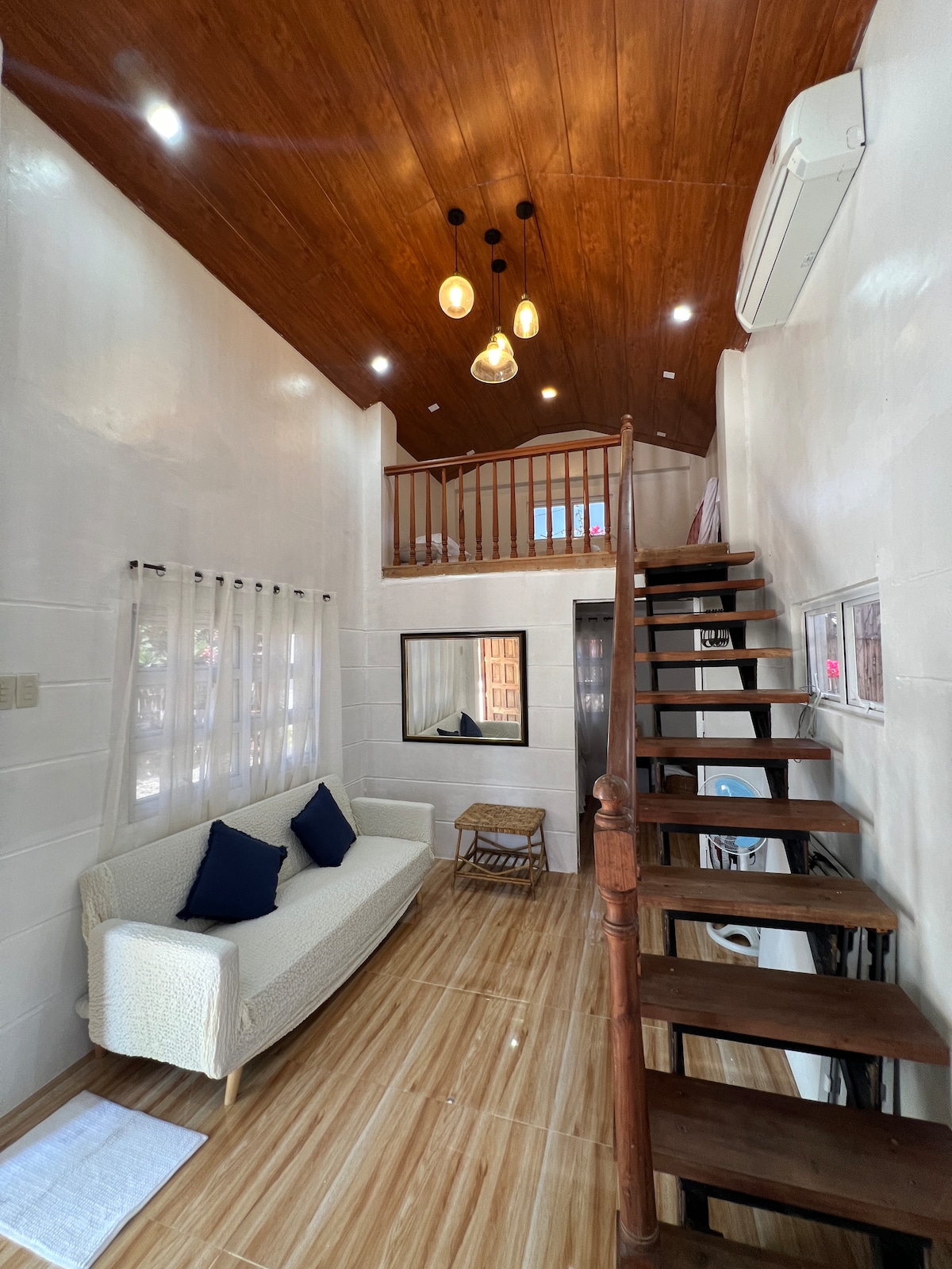 Nowoczesny apartament w domu położonym w odległości spaceru od pięknej plaży Sto. Domingo i 15 minut jazdy do Vigan City. W otoczeniu młodych, rodzimych palm kokosowych, które porastają całą posesję, z betonowym ogrodzeniem i spokojną okolicą. Pokój jest wyposażony w łóżko typu king size, wysokiej jakości materac (nie piankowy), prywatną łazienkę z ciepłą wodą i cichą lodówkę, aby schłodzić ulubione napoje i delektować się nimi na naszej zadaszonej werandzie inspirowanej stylem alfresco.