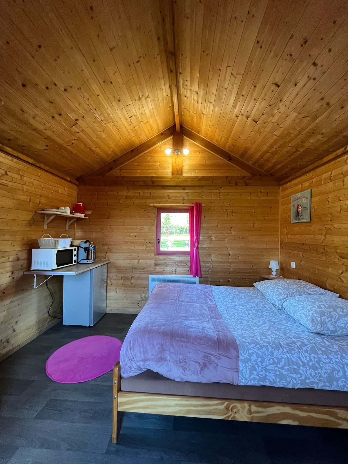En voilà, une idée de séjour original, zen et ressourçant ! Bienvenue dans un cadre idyllique où une mini maison, à la fois compacte et spacieuse, vous attend. Le principal avantage de ce site est l'absence totale de vis-à-vis. La cabane est située en pleine nature, offre une vue panoramique sur une forêt et des prairies naturelles. La chambre se trouve en hauteur, orienté face au lever du soleil Le moment zen : Un Bain Nordique ,sous les étoiles. Petit déjeuné 16€ pour 2 personnes.
