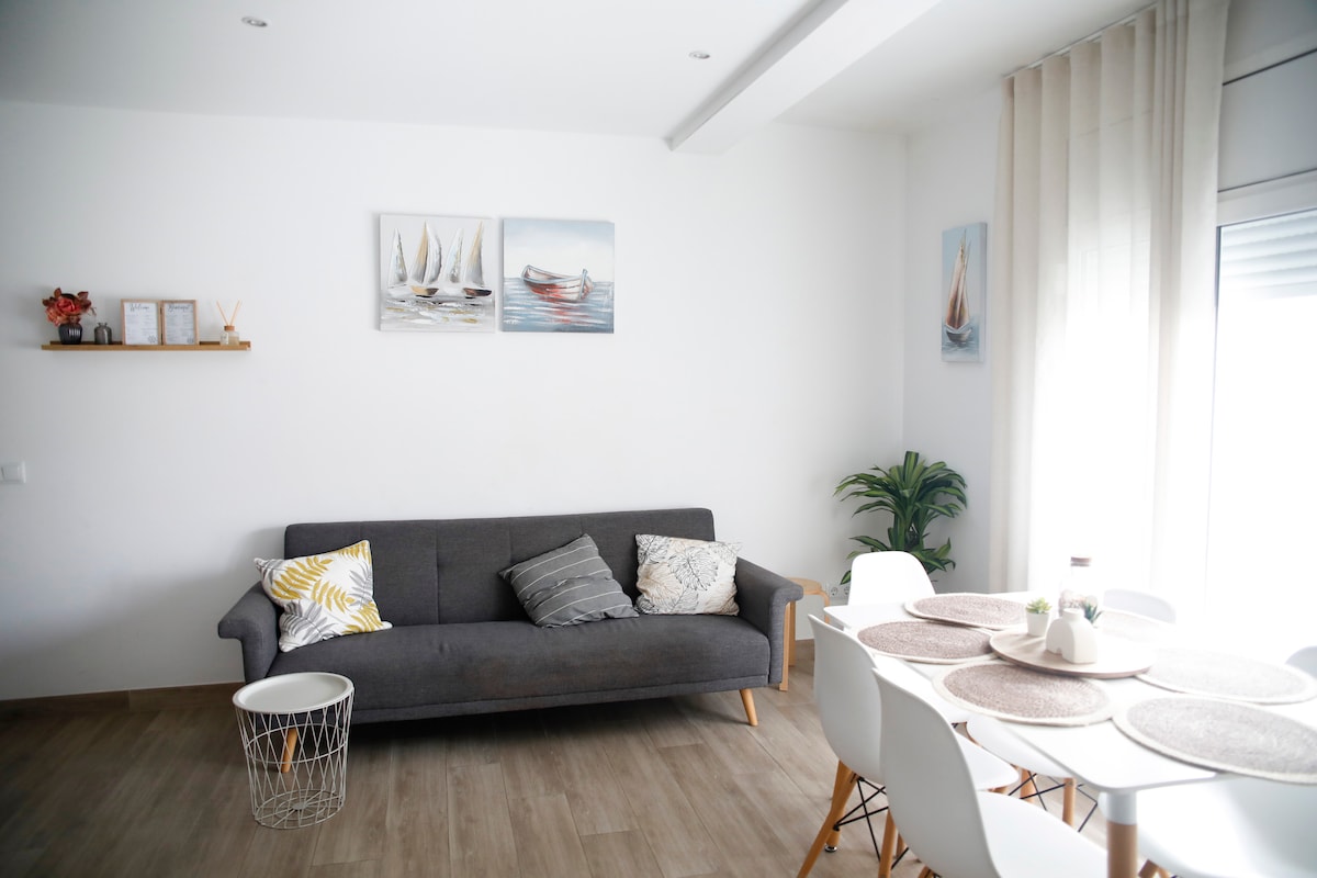 Idealne dla par, rodziny i przyjaciół. Zrelaksuj się nad morzem w Vilafortuny, Cambrils. Apartament z 2 sypialniami dwuosobowymi, w pełni odnowiony, aby przywrócić jego wyjątkowy styl z lat 60. XX wieku ze wszystkimi udogodnieniami z 2024 roku. Duży balkon z widokiem na sosny, plaże i morze. Wszystkie pokoje są zewnętrzne, z pięknymi widokami, dużą ilością światła słonecznego i orzeźwiającą bryzą. Przestronna kuchnia ze wszystkimi udogodnieniami. Stylowy salon z dwoma dodatkowymi łóżkami, w razie potrzeby. Idealne dla 4 osób, idealnie pasuje dla 6 osób.