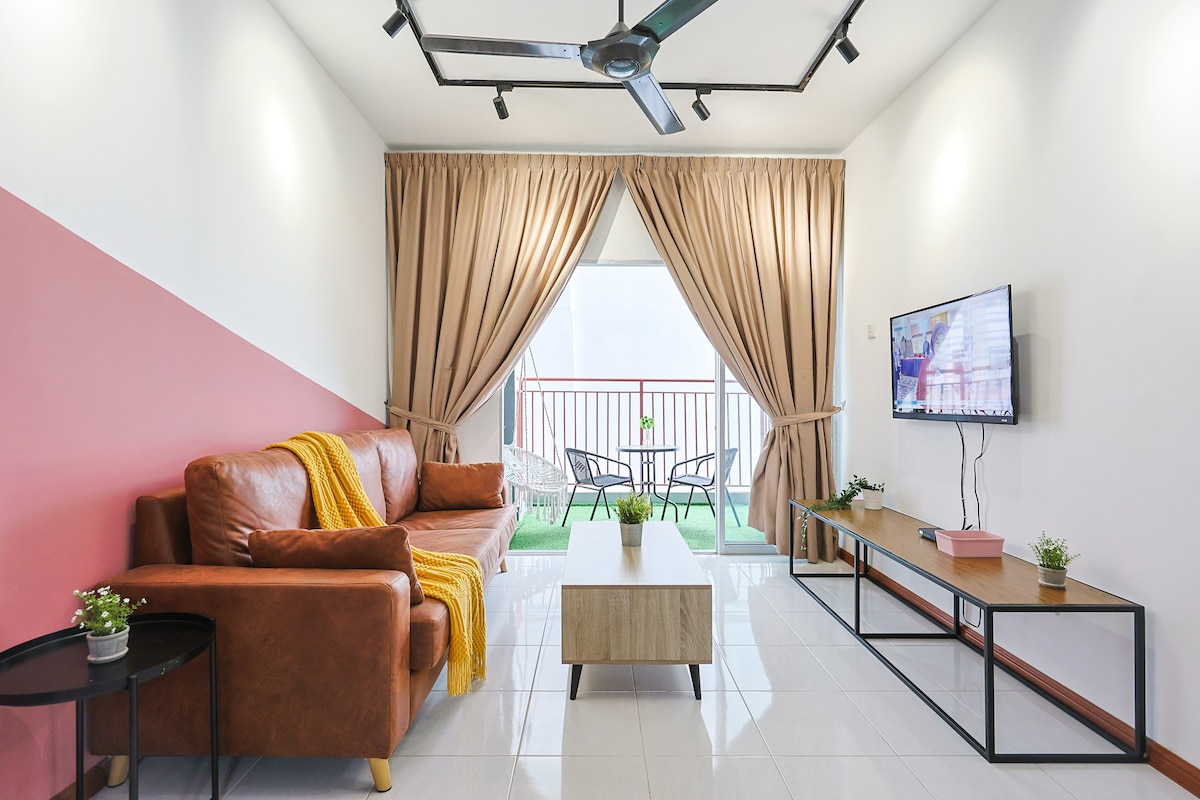 Nestled in Golden Hills, a modern township near tourist attractions and a weekend night market, this beautifully decorated semi-D villa blends art and nature. The backyard garden is perfect for steamboat and BBQ, and the balcony offers a peaceful space to relax. The living room features a 75-inch LED TV with TV box for your entertainment. Our rooms are fitted with high-quality mattresses for a comfortable sleep. A Coway water dispenser and high-speed Wi-Fi add to your convenience.