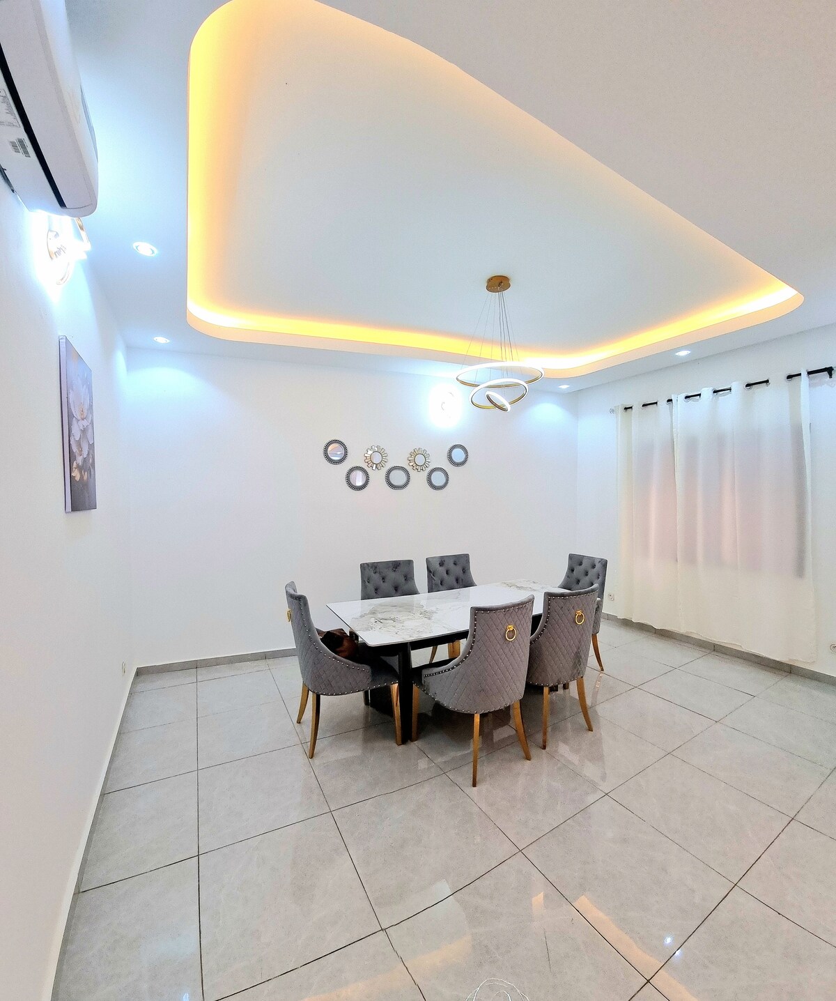 Otocz się stylem, komfortem i bezpieczeństwem w tym pięknym domu. Ta wyjątkowa dwupoziomowa willa położona jest w spokojnej i cichej okolicy w słynnej dzielnicy ODZA w Yaoundé, blisko lotniska, centrum miasta i supermarketów. Każdy szczegół został zaprojektowany tak, aby zapewnić Ci przyjemny pobyt. Basen i łaźnia parowa do Twojej dyspozycji, luksusowe materace piankowe w każdej sypialni gwarantują wspaniały sen, a w przypadku awarii dostępny jest elektryczny system awaryjny.