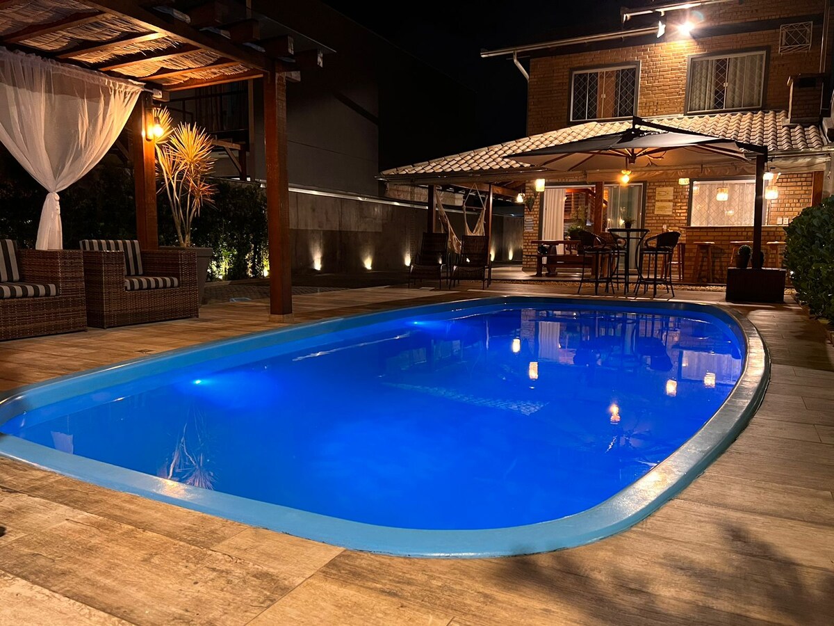 Położony kilka kroków od piaszczystej plaży, Casa Hámar oferuje niesamowite doświadczenia dla rodzin, ich zwierząt domowych oraz dla grup kadry kierowniczej, które pragną ciszy i spokoju nad morzem. W centrum, bardzo blisko parku Beto Carrero World i lotniska Navegantes. Nowy dom, zaprojektowany tak, aby wszystkie pomieszczenia towarzyskie i gastronomiczne miały widok na morze, a szczegół: apartament główny również ma widok na morze! Fantastyczna panorama, komfort i prywatność.