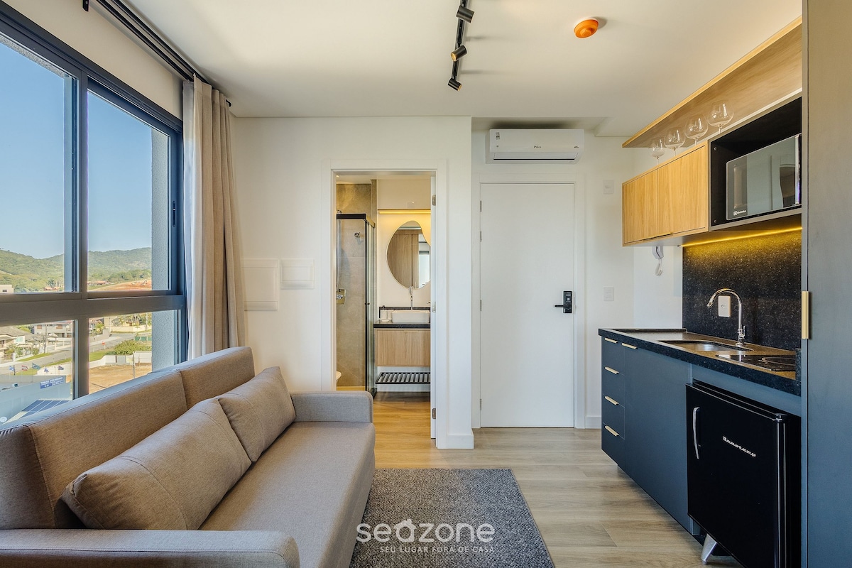 Poczuj prawdziwy wypoczynek nad oceanem w tym wyrafinowanym studio w Penha. Zaledwie 50 m od plaży. W apartamencie znajduje się łóżko typu queen, rozkładana sofa i balkon z widokiem na morze. W pełni wyposażona kuchnia i Wi-Fi zapewniają wygodę i komfort. Ciesz się basenem na dachu z panoramicznym widokiem. Strategiczna lokalizacja, blisko restauracji, targów i Beto Carrero. Zarezerwuj pobyt już teraz!