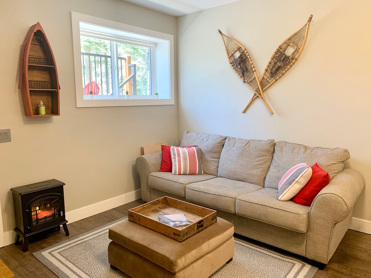– prywatna sypialnia, łazienka, salon, wejście i taras – w salonie znajduje się mała lodówka, toster, kuchenka mikrofalowa, ekspres do kawy, czajnik, naczynia i jadalnia – zapewnione zapasy na śniadanie (kawa, herbata, płatki śniadaniowe) – Łóżko typu queen + sofa i składane łóżeczko dziecięce. Prześcieradła są lniane lub z organicznej bawełny od kanadyjskich firm. - parking na miejscu, poza ulicą - Wi-Fi - kominek elektryczny – palenie na prywatnym tarasie zewnętrznym - 10 minut spacerem do centrum miasta, Lakeside Park i sklepów spożywczych.