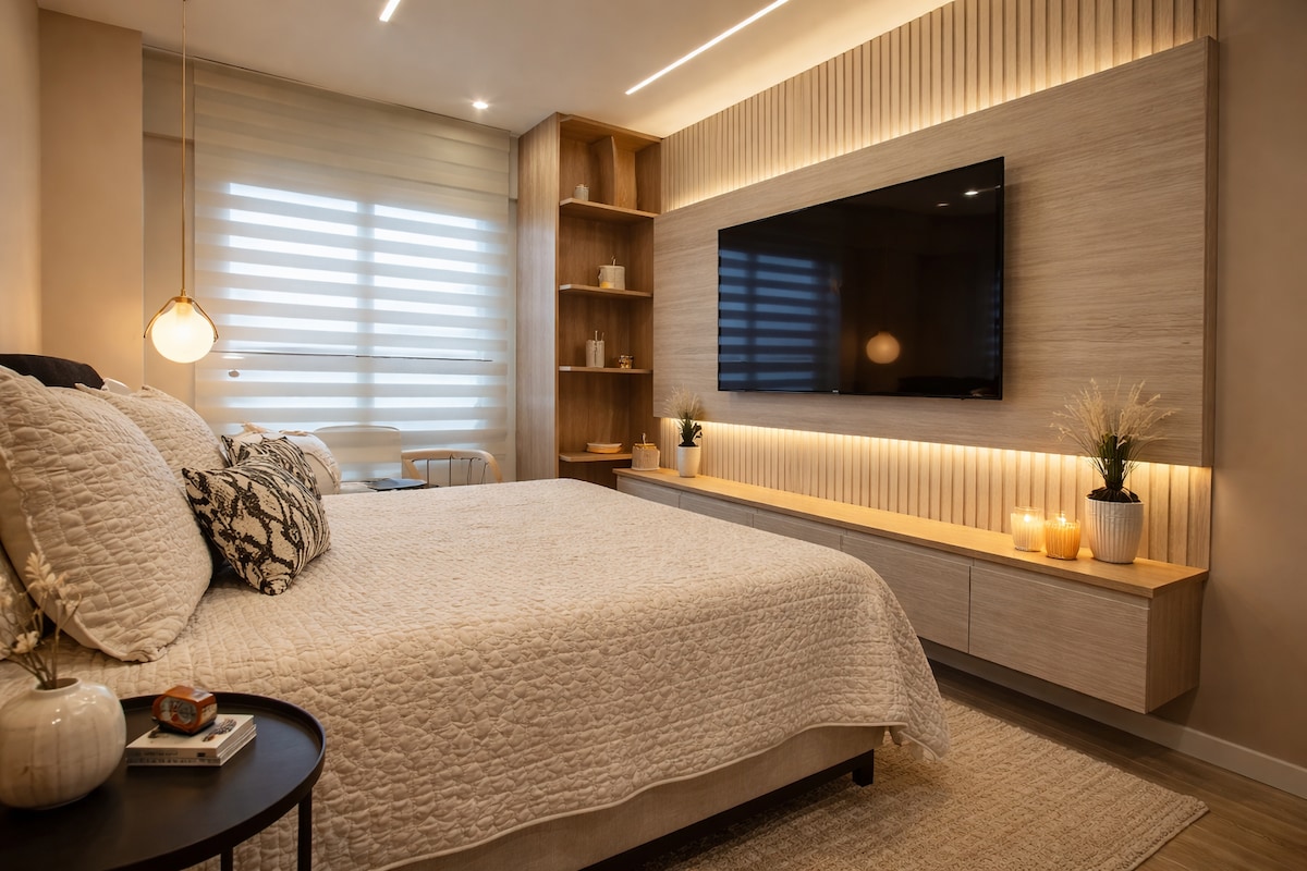 Nowoczesne i przytulne mieszkanie w cichej i strategicznej okolicy Bogoty. 10 minut od lotniska, 15 od ambasady i 5 od centrów handlowych. 2 pokoje. (Łóżko typu queen i podwójne), sofa typu king, nowoczesna łazienka z gorącą wodą, wyposażona kuchnia, publiczny park do joggingu i ćwiczeń, plac zabaw, taras z widokiem na miasto, całodobowa ochrona i łatwy dostęp do supermarketów, restauracji i transportu. Idealne do odpoczynku, pracy lub korzystania, jakbyś był w domu.