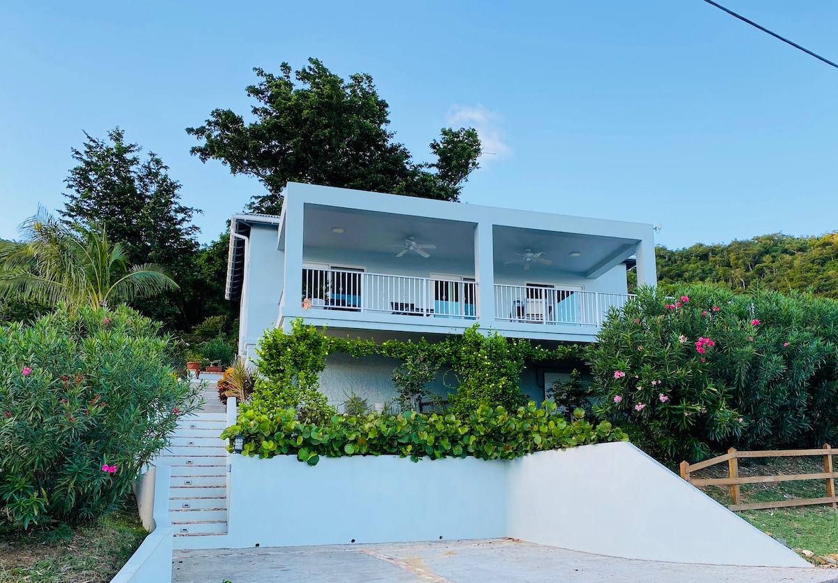 Przestronny, luksusowy apartament z 2 sypialniami, 2 łazienkami, w pełni wyposażoną kuchnią oraz pralką i suszarką. Oba pokoje wyposażone są w materace z pianki termoplastycznej firmy Loom & Leaf. Główna sypialnia ma 1 łóżko typu King z prywatną łazienką, a druga sypialnia może być ustawiona jako 2 łóżka typu Twin lub 1 łóżko typu King. 10 minut jazdy od Cruzbay, restauracji i sklepów spożywczych. Wspólny basen (głębokość 4 stopy) z dwoma innymi apartamentami. Wspólny grill przy basenie.