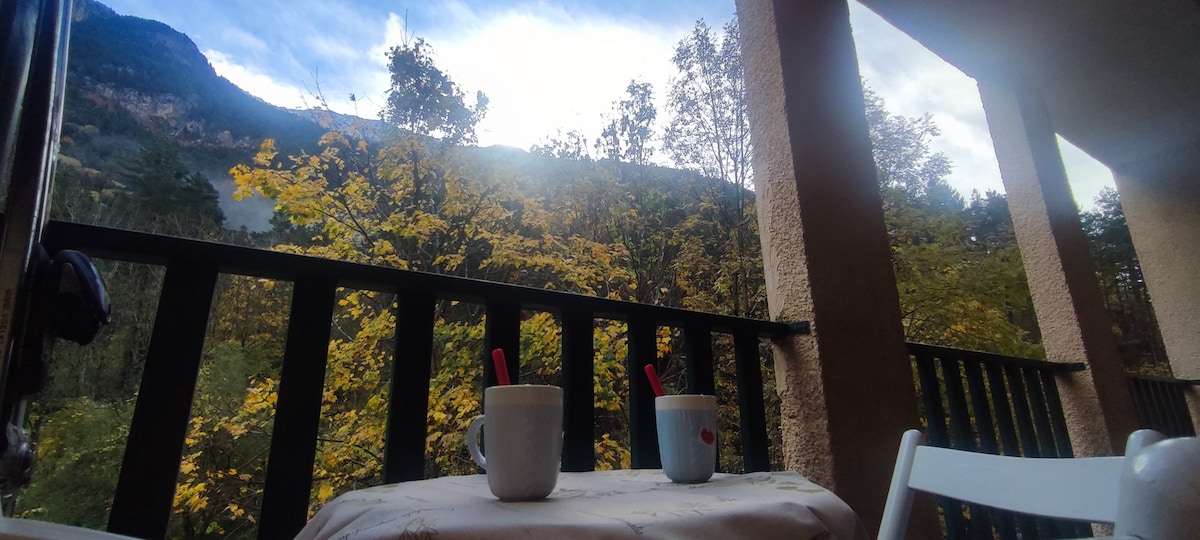Acogedor apartamento en pleno Pirineo Aragonés, en frente de la Estación Internacional de Canfranc. Ideal para esquiadores, a 8 minutos en coche de Candanchú y Astún. También perfecto para aventureros, excursionistas y amantes de la montaña. Multitud de rutas y senderos parten de Canfranc. Nuestro apartamento consta de 1 dormitorio con una cama de matrimonio de 135 cm, y el sofá cama del salón de 140 cm. lo cual lo hacen perfecto para dos parejas o un matrimonio con hijos. Totalmente equipado.