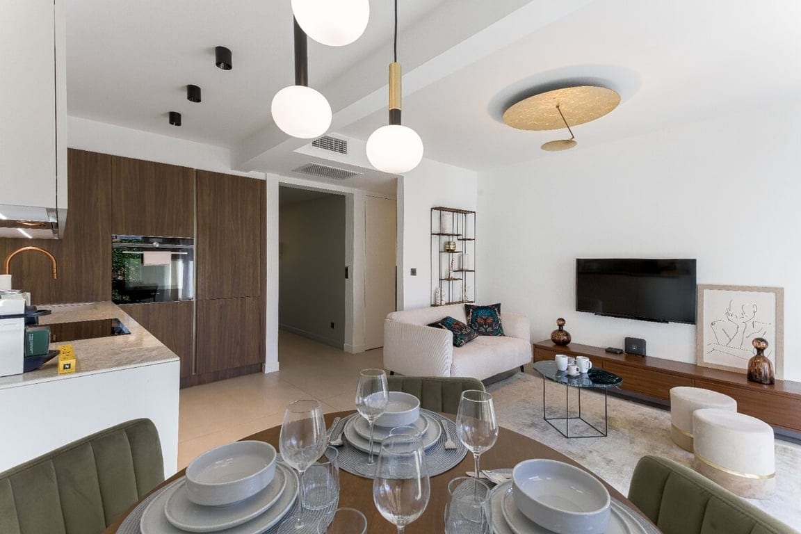 Odkryj oazę spokoju skąpaną w świetle, całkowicie przeprojektowaną przez architekta. Apartament znajduje się na najwyższym piętrze prestiżowej rezydencji. Wnętrza są elegancko urządzone, a wykończenie jest wysokiej klasy. Wszystko to dla wygody i dobrego samopoczucia gości. Gdy tylko dotrzesz, oczaruje Cię elegancja przestrzeni, jakość udogodnień, spokój dwóch prywatnych tarasów, które zapraszają do relaksu między niebem a morzem.